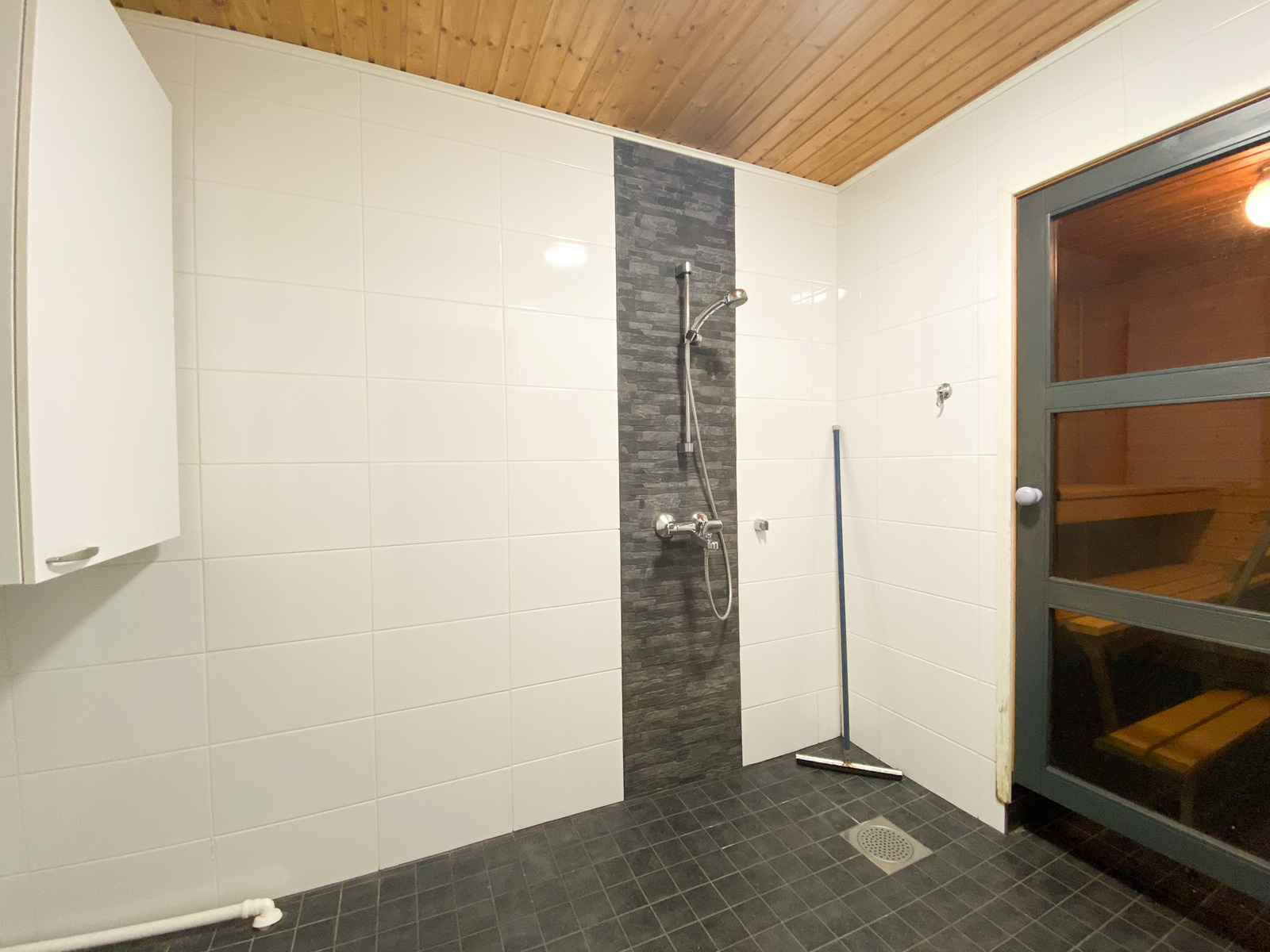 Asunnossa tilava olohuone sekä oma etu- ja takapiha. Keittiössä keraaminen liesitaso sekä astianpesukone. Makuuhuoneiden yhteydessä olevien kaapistojen avulla säilytystilaa on runsaasti. Kylpyhuoneessa pyykinpesukoneliitäntä. Oma sauna.