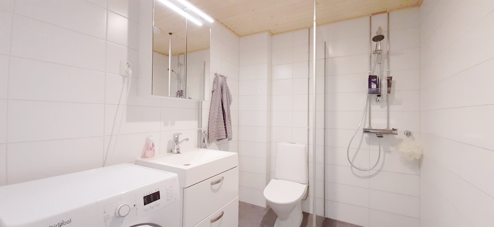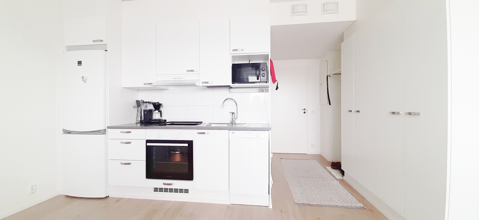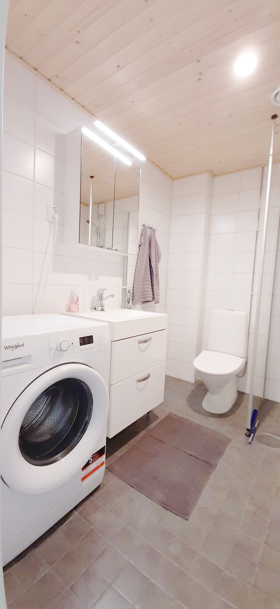 Huoneiston vaaleat pintamateriaalit tekevät asunnosta valoisan ja viihtyisän. Keittiö ja olohuone on avaraa yhtenäistä tilaa. Keittiö on varustettu keraamisella liedellä, kalusteuunilla ja jääkaappipakastimella sekä astianpesukoneella. Toimivasta ja tilavasta kylpyhuoneesta löytyy liitäntä pyykinpesukoneelle.