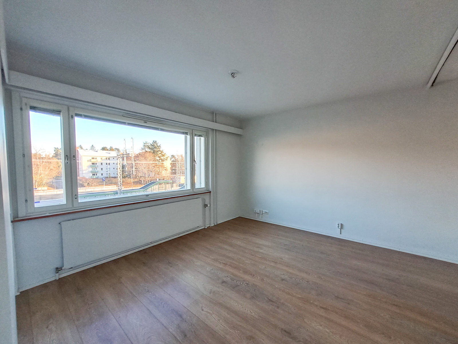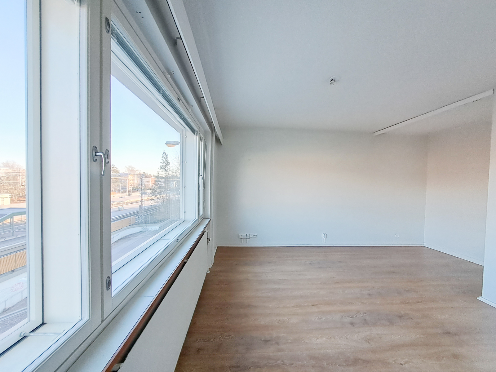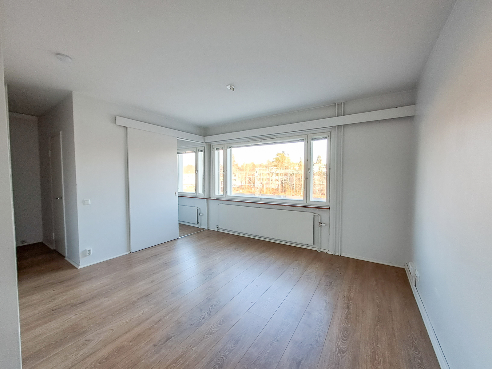 Asunnossa on tilava olohuone, jonka yhteydestä löytyy keittiö ja siellä paljon kaappitilaa. Kylpyhuone on putkiremontin yhteydessä uusittu. Kylpyhuoneessa pesukoneliitäntä. Vaatehuoneesta löytyy paljon säilytystilaa.