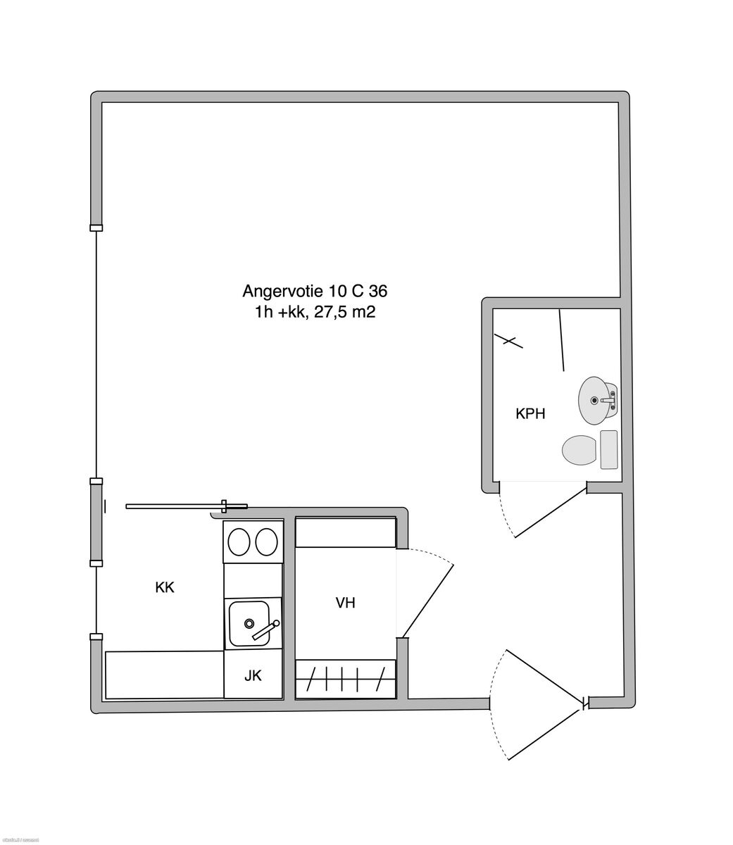 Huoneiston kokoonpano 1h+kk+kph+vh+alkovi