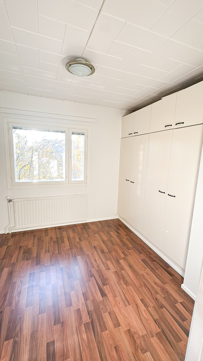 Tämä koti on neliöitään suuremman tuntuinen ja pohjaratkaisu on toimiva ja helposti kalustettavissa. Olohuoneen yhteyteen mahtuu sohvan lisäksi vaikka ruokapöytä tai etätyöpiste. Keittiössä on hyvä tila aamiaispöydälle ja tarvittava määrä kaappitilaa. Jääkaapin alapuolelle on sijoitettu pyykinpesukone vuokralaisen käyttöön. Makuuhuoneessa on useampi kaappi säilytykseen ja rauhalliset näkymät sisäpihalle päin. Tämä sympaattinen taloyhtiö ja asunnon tunnelma täytyy kokea paikan päällä!