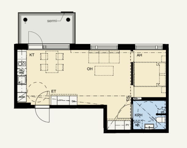 Huoneiston kokoonpano 2h + kt + kph + lasit.parv.