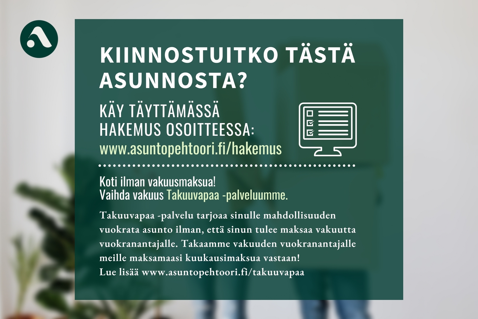 If you’re interested, please fill out a short application at www.asuntopehtoori.fi/application.