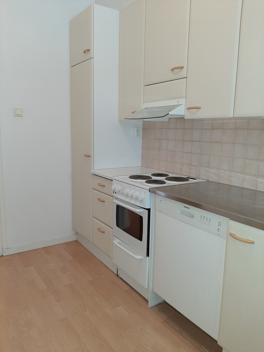 Vanhan talon tunnelmaa huokuvassa kaksiossa on hyvä pohjaratkaisu ja hyvä varustetaso. Erillisessä keittiössä on jääkaappipakastin, astianpesukone ja sähköliesi. Kauniisti laatoitetussa kylppärissä on pyykinpesukone. Makkarista löytyy mukavasti kaappitilaa.