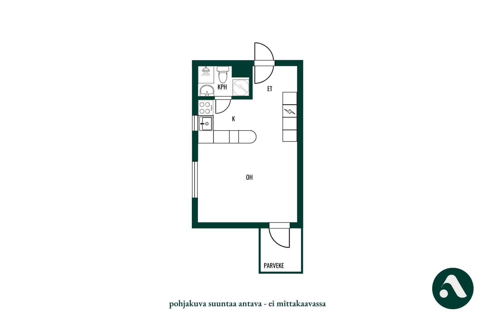 | Huoneiston kokoonpano | 1h+kt+kph+lasitettu parveke |