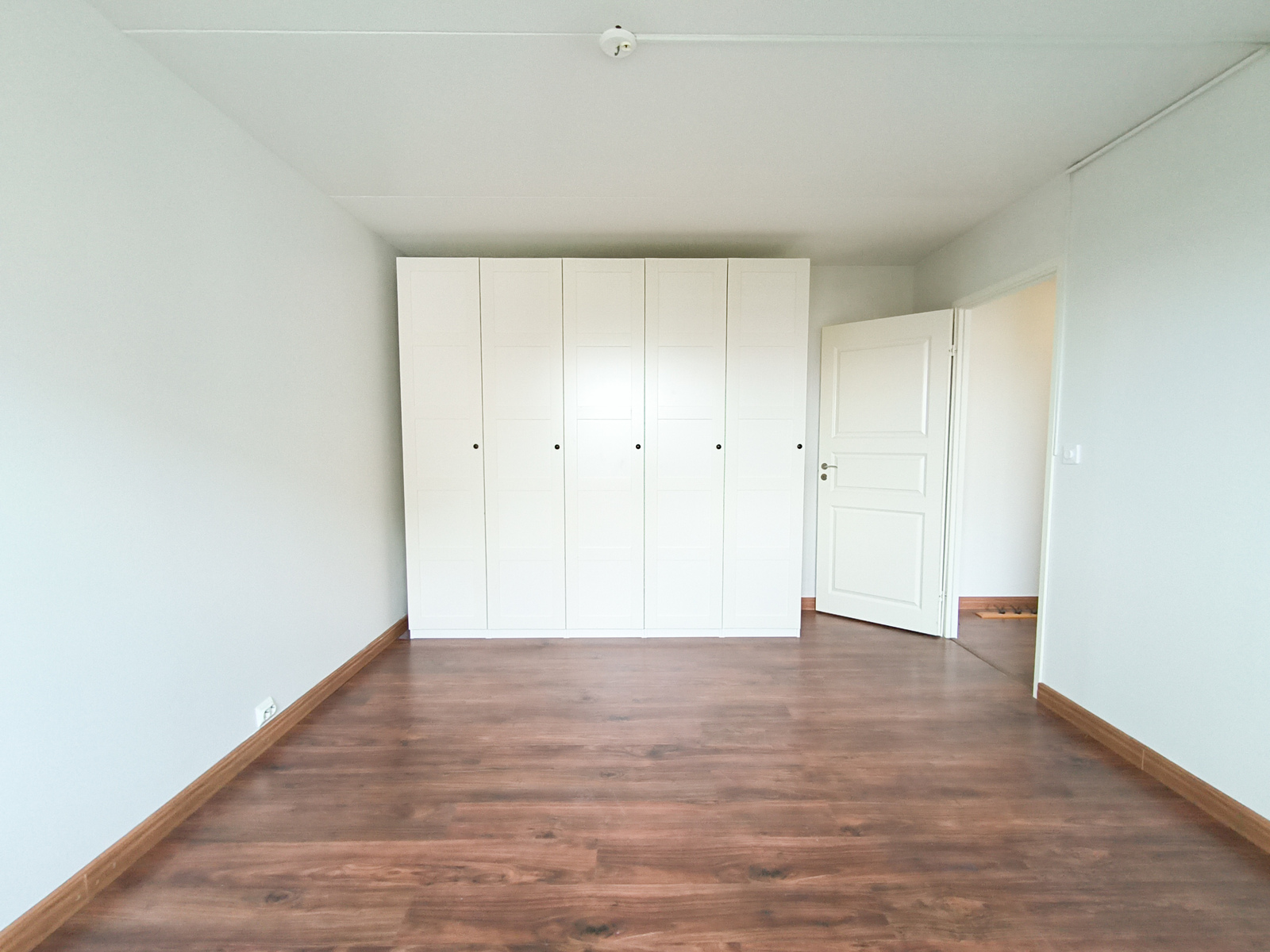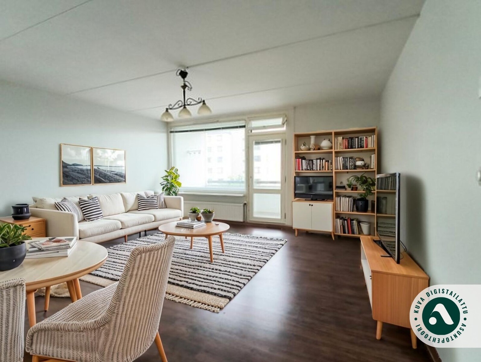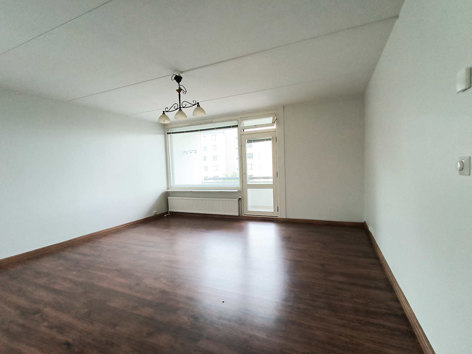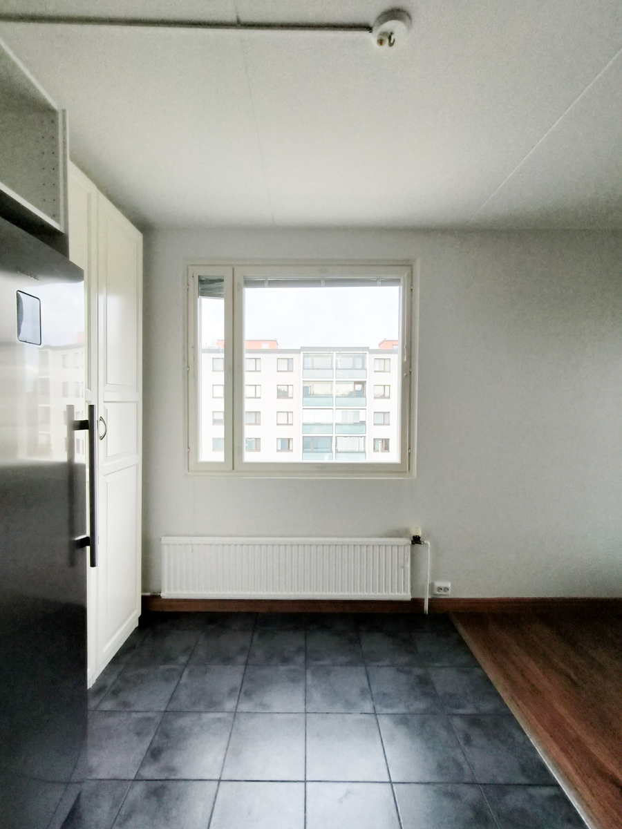 Tämän kodin sydämenä toimii avokeittiö-olohuone yhdistelmä, joka luo ison tilan ja mahdollistaa monia vaihtoehtoja sisustamiselle. Olohuoneesta on käynti lasitetulle parvekkeelle josta on rauhalliset ylimmän kerroksen näkymät. Avokeittiössä on paljon kaappi- ja laskutilaa, iso jääkaappi ja pakastin, induktioliesi, uusi uuni ja iso astianpesukone. Asunnon kaikki kolme makuuhuonetta ovat tilavia ja kahdesta niistä löytyy runsaasti kaappeja säilytykseen. Kylpyhuoneessa on tila päältä täytettävälle pyykinpesukoneelle. Erillinen wc.