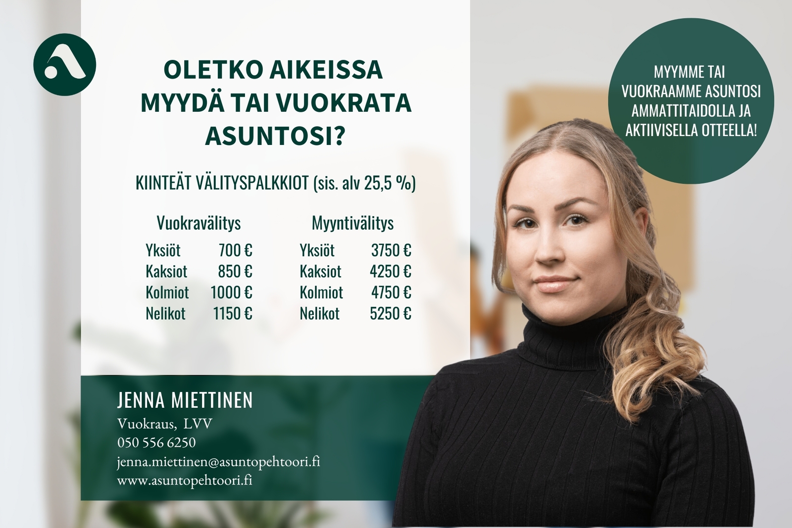 If you are interested, please fill out a short application: WWW.ASUNTOPEHTOORI.FI/APPLICATION