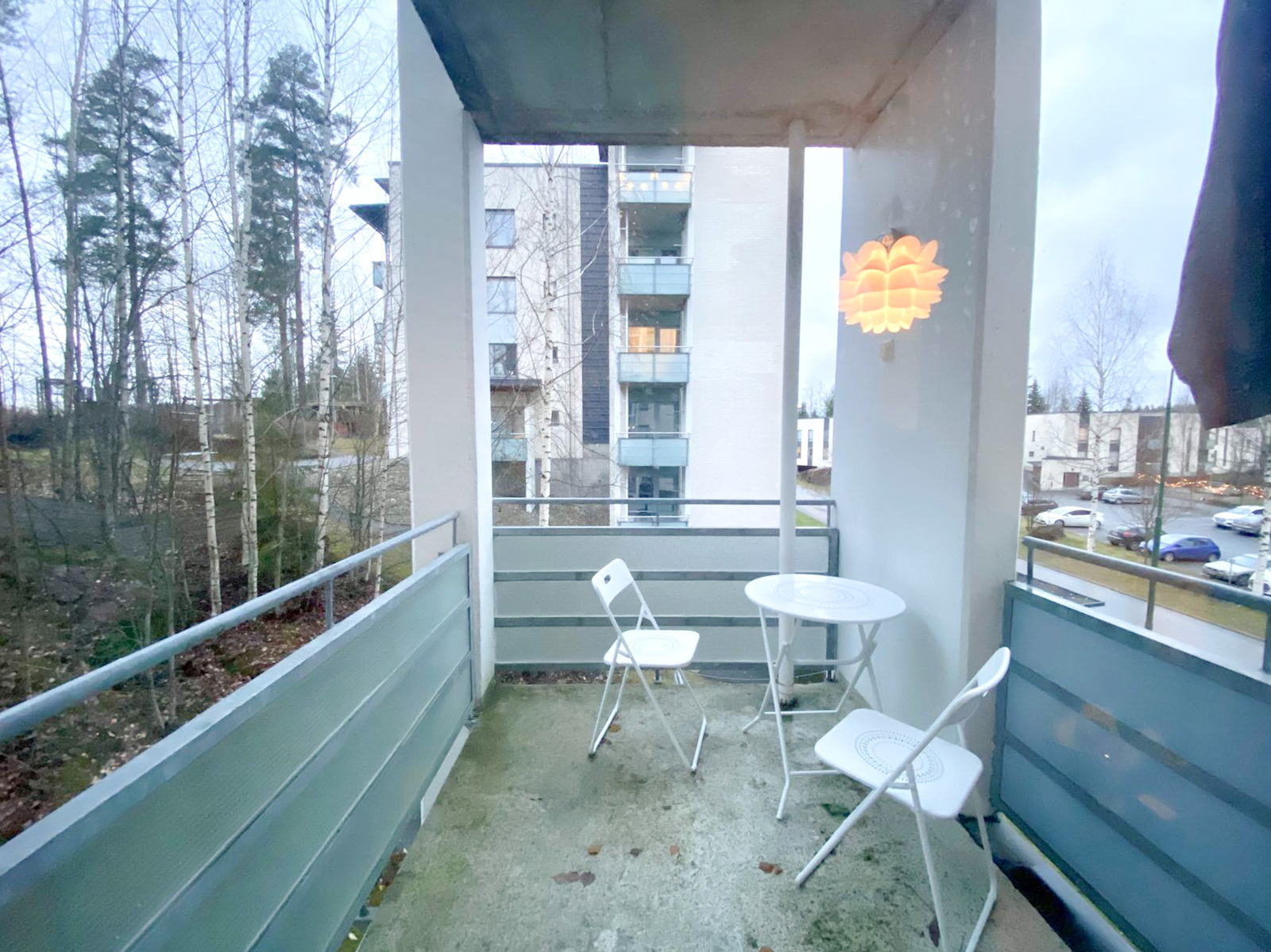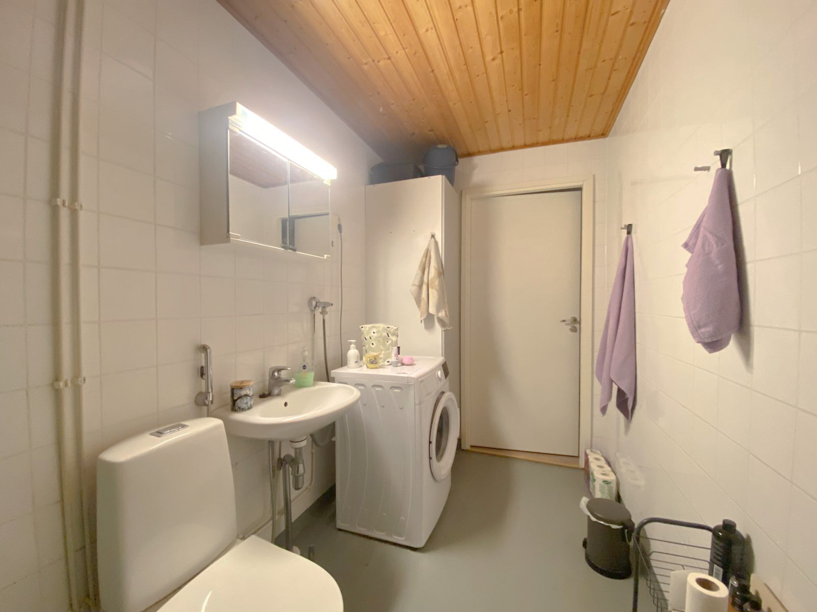 Tilavassa kylpyhuoneessa on paikka pyykinpesukoneelle ja lisämukavuutta tuo oma sauna, jossa on kiva heittää löylyt pitkän päivän päätteeksi ja käydä sen jälkeen vilvoittelemassa parvekkeella.