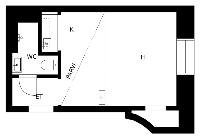 | Huoneiston kokoonpano | 1h+kk+parvi+kph |