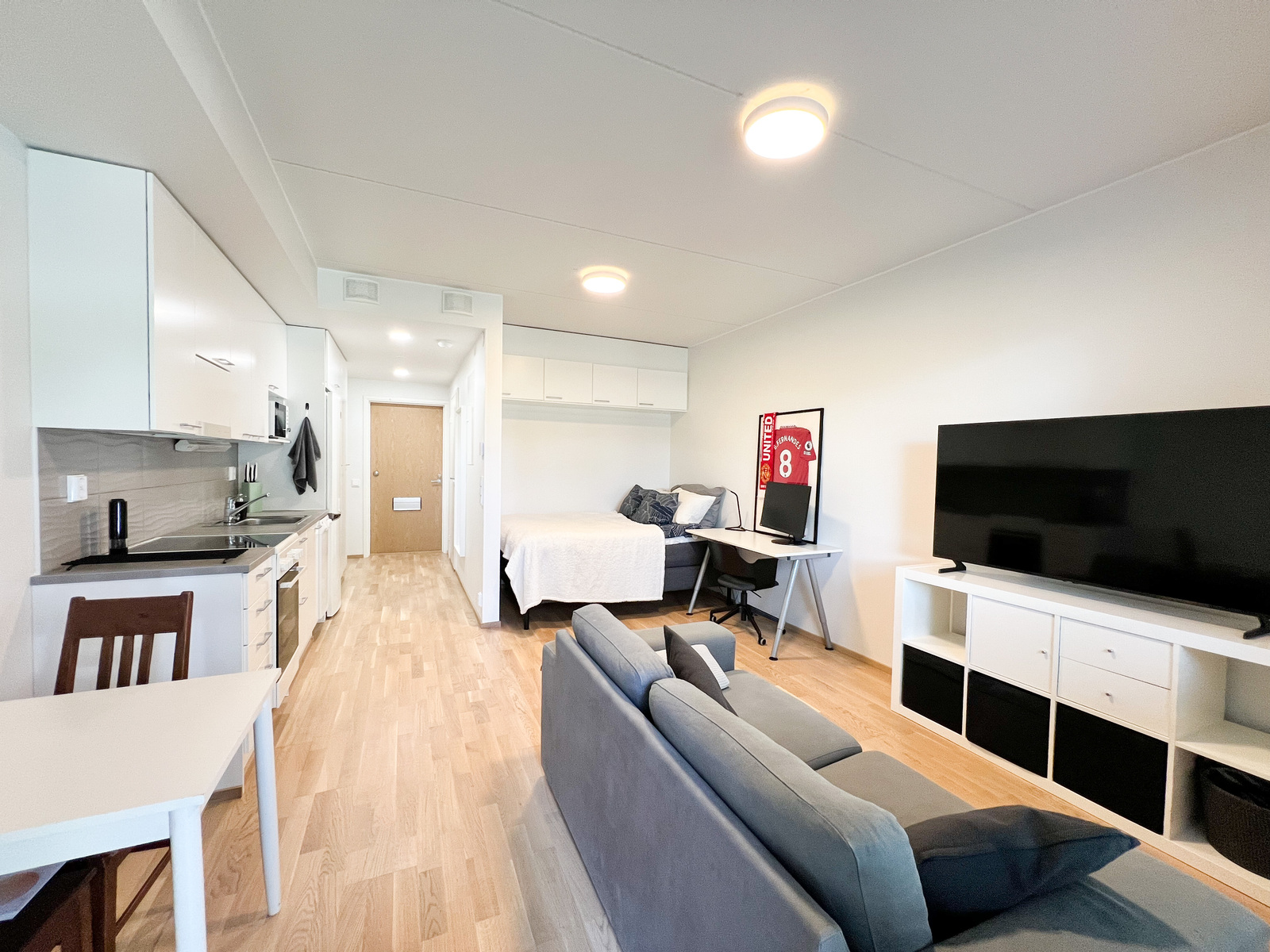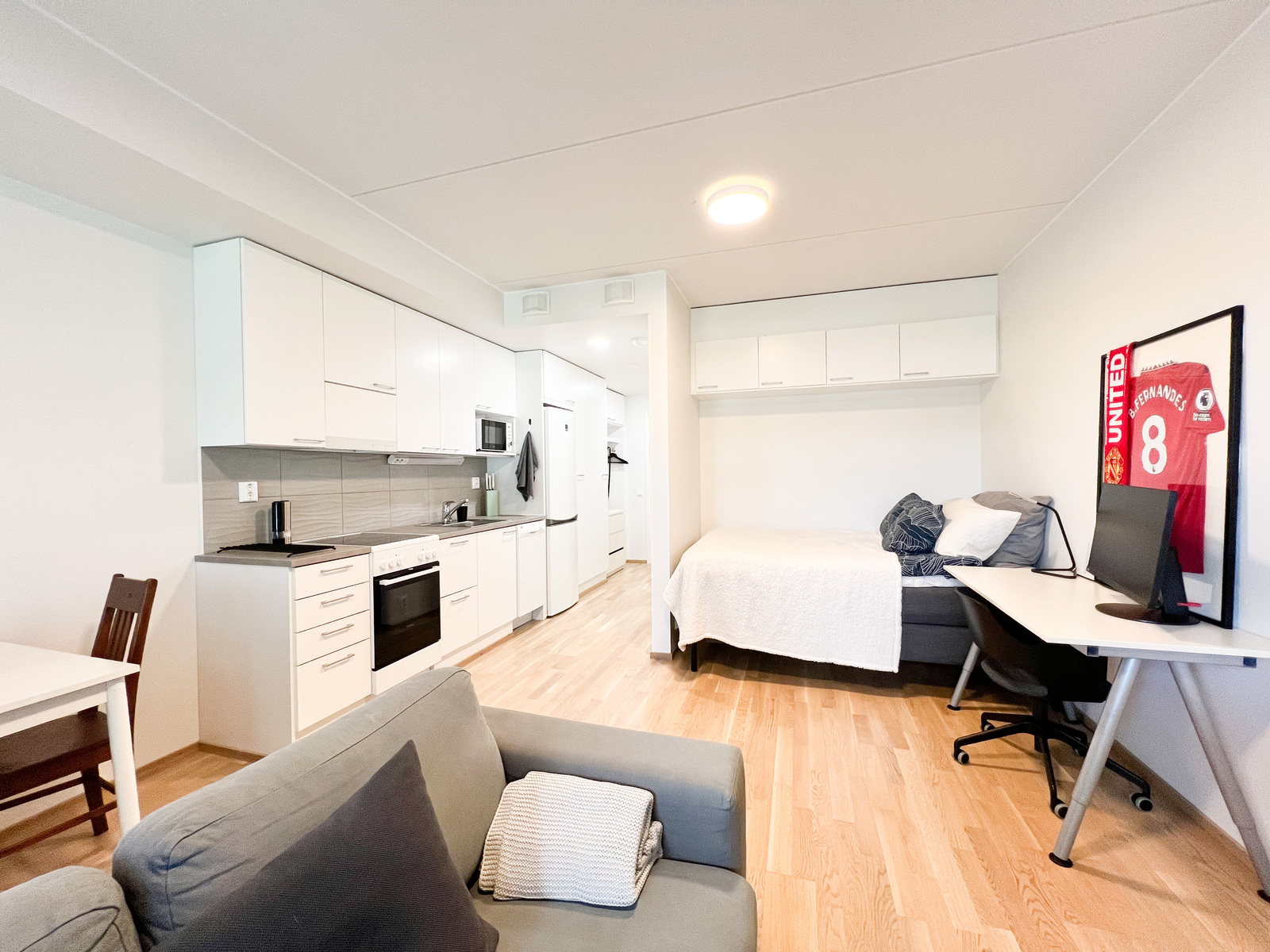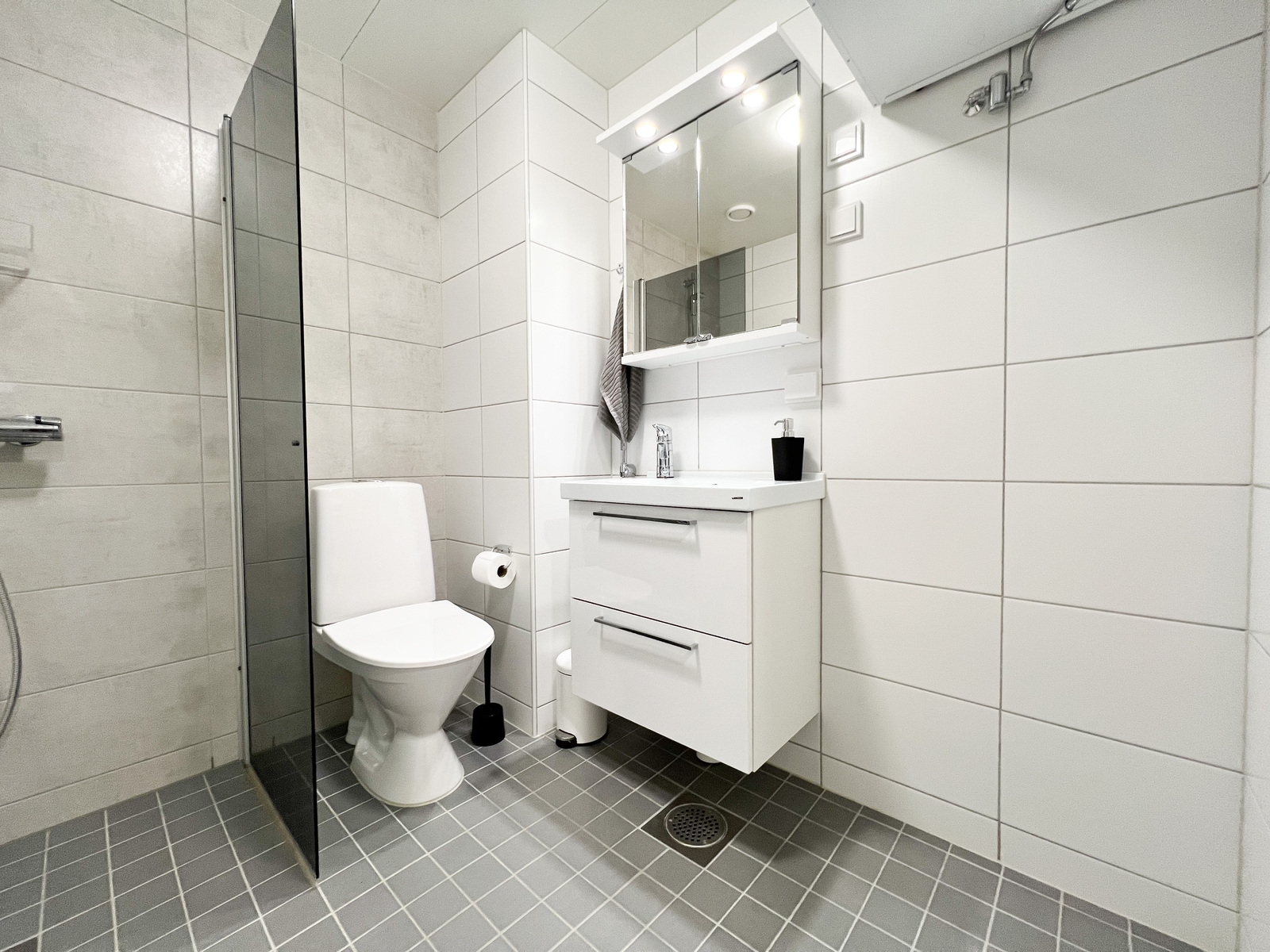Tämä käytännössä uudenveroinen yksiö hurmaa maisemillaan ja toimivalla pohjaratkaisullaan. Huoneiston kunnosta on pidetty erinomaista huolta, ja laadukkaat pintamateriaalit, moderni keittiö sekä kauniisti laatoitettu kylpyhuone tekevät arjesta miellyttävää. Tilavalta lasitetulta parvekkeelta avautuvat rauhalliset näkymät taloyhtiön takapihalle ja kanavalle, mikä tarjoaa hienon lisän asumiseen.