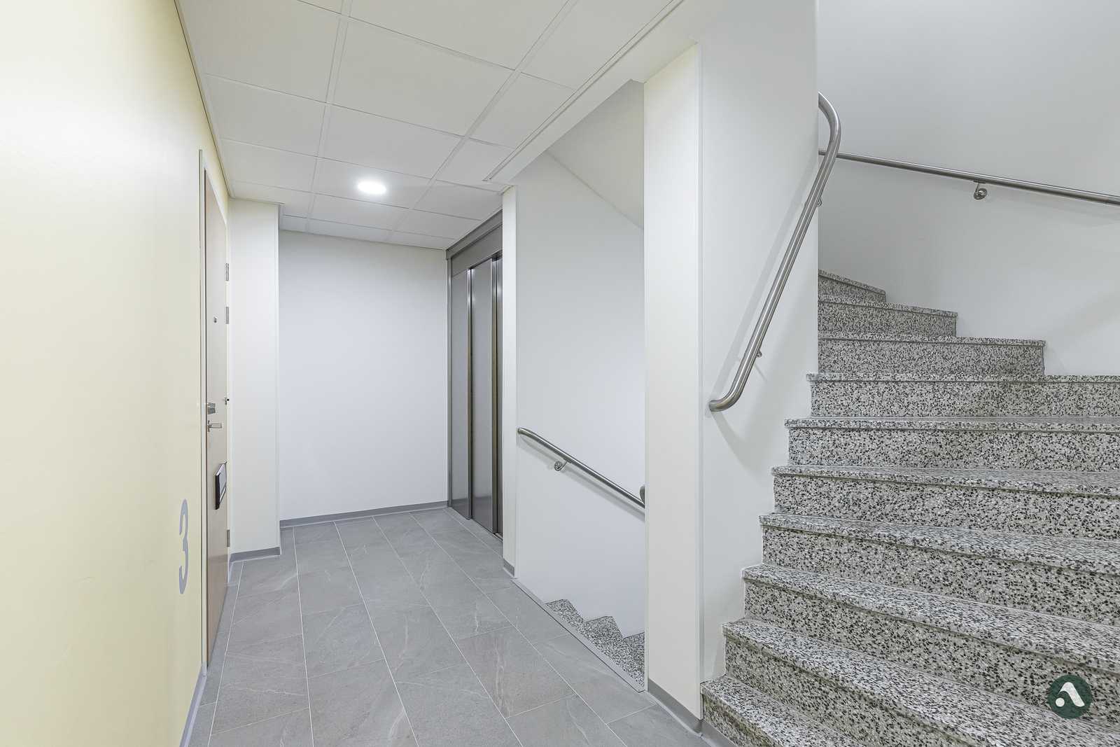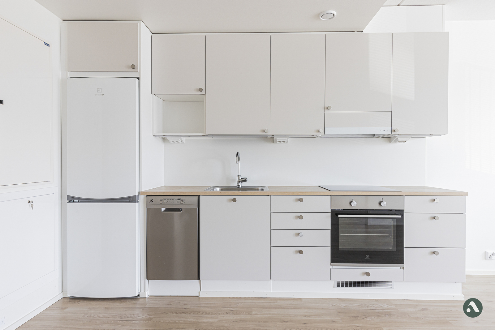 Tässä kolmannen kerroksen hissitalon upeassa huoneistossa on käytetty laadukkaita materiaaleja. Lattiamateriaalina on tyylikäs laminaatti ja seinät on maalattu vaalealla värisävyllä, mikä tekee asunnosta valoisan ja viihtyisän. Keittiön varusteluihin kuuluu mm. erillisuuni ja keraaminen liesitaso sekä astianpesukone. Kokonaan laatoitetussa tilavassa kylpyhuoneessa on tilaa ja liitäntä pyykinpesukoneelle. Asunnossa tuloilman viilennys ja vesikiertoinen lattialämmitys.