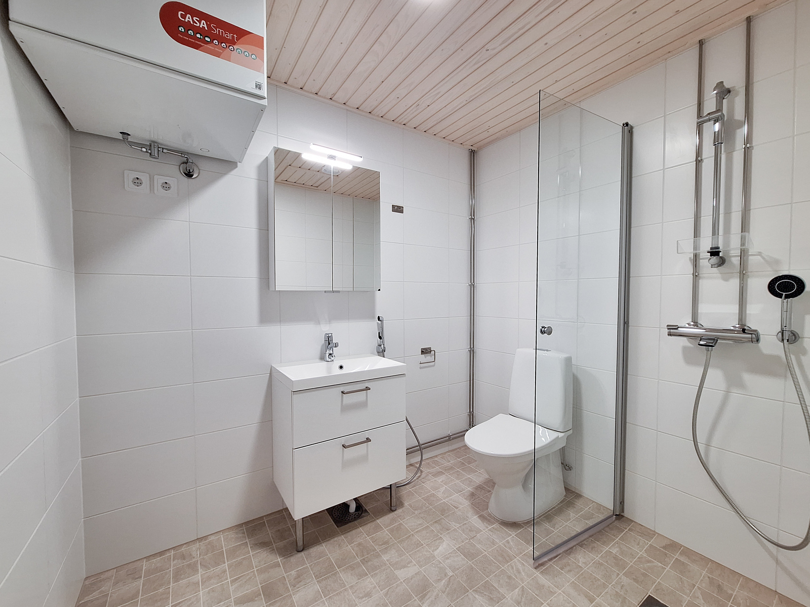 Asunnossa on laadukkaat materiaalit ja toimiva pohjaratkaisu, joka avokeittiöineen luo tilan tuntua. Hyvin varustetusta keittiöstä löytyy keraaminen liesitaso ja astianpesukone. Modernisti laatoitetussa kylpyhuoneessa on lattialämmitys ja liitäntä pyykinpesukoneelle. Kokonaisuuden kruunaa tilava lasitettu parveke, joka toimii lisähuoneena ison osan vuodesta. Taloyhtiössä on myös nopea 100M laajakaistayhteys.