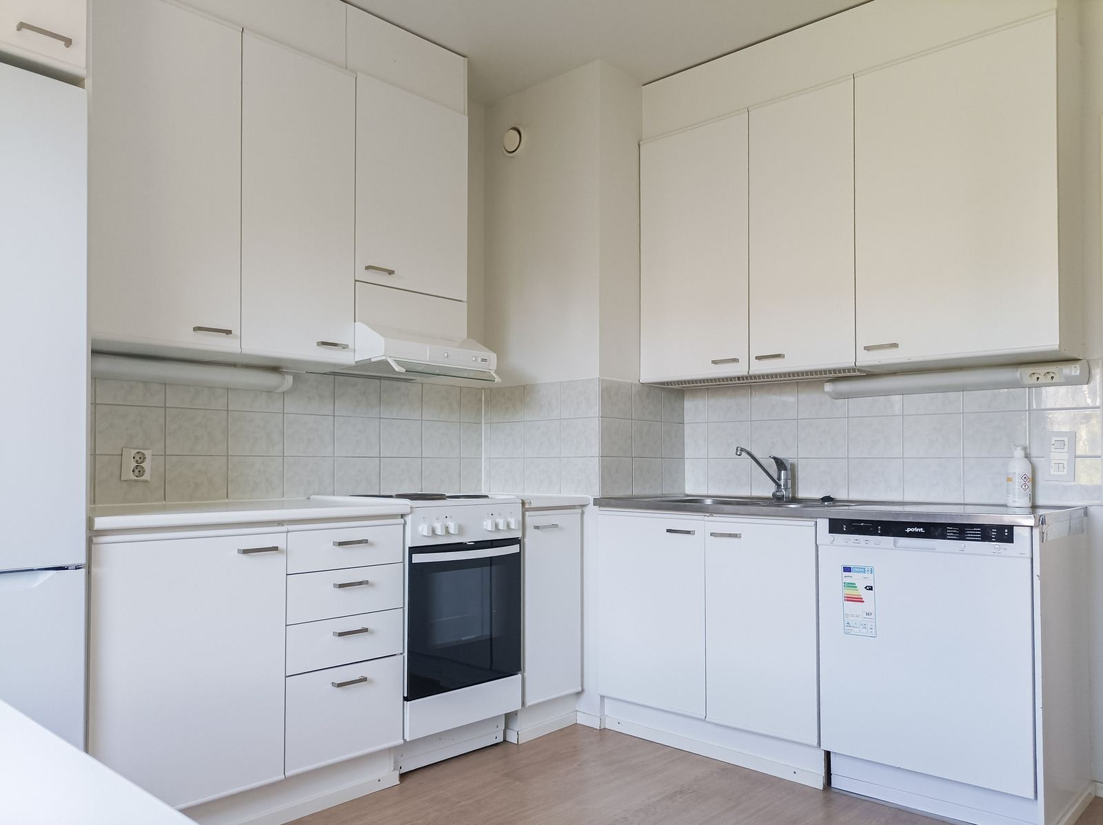 Tämä kodikas perheasunto sopii hyvin lapsiperheen tai pariskunnan kodiksi! Asunnon seinät ovat raikkaan valkoiset ja lattiat tyylikästä laminaattia. Ajattoman vaaleasta keittiöstä löytyy kaikki tarpeellinen kotikokin tarpeisiin astianpesukoneineen ja sinne mahtuu hyvin myös ruokaryhmä. Kylpyhuoneesta löytyy pesukoneliitäntä ja tilavaraus pesukoneelle. Tässä kodissa on myös kaksi tilavaa vaatehuonetta ja hyvän kokoinen, lasitettu parveke.