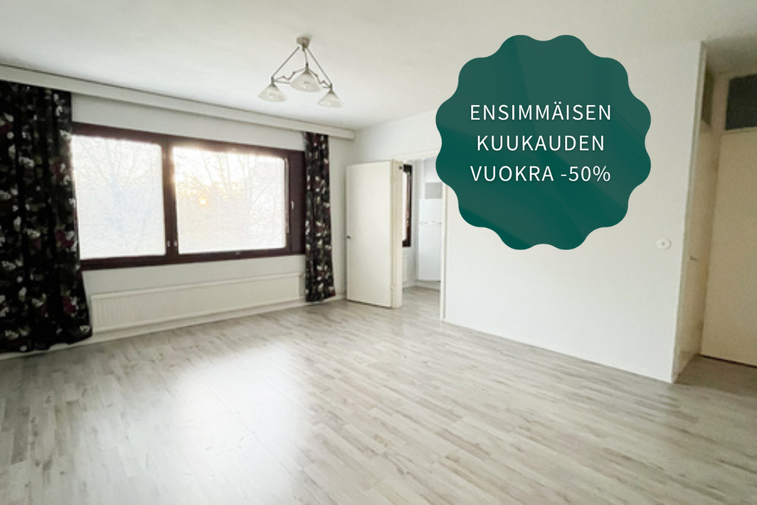 HUOM: Ensimmäisen kuukauden vuokra -50%. Etu ei koske vesimaksua.