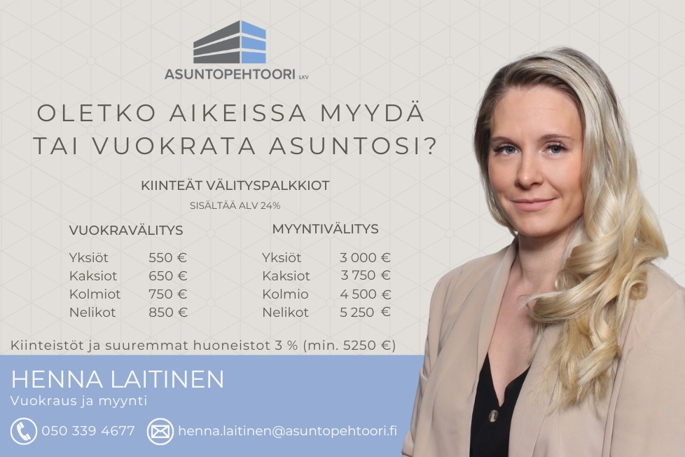 | Lisätietoja pinta-alasta | isännöitsijäntodistuksen mukainen |