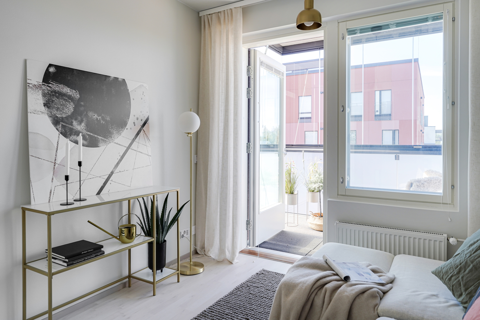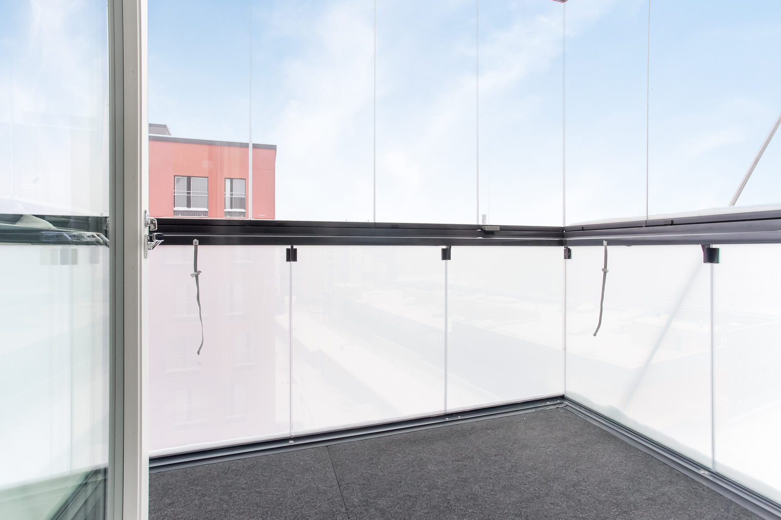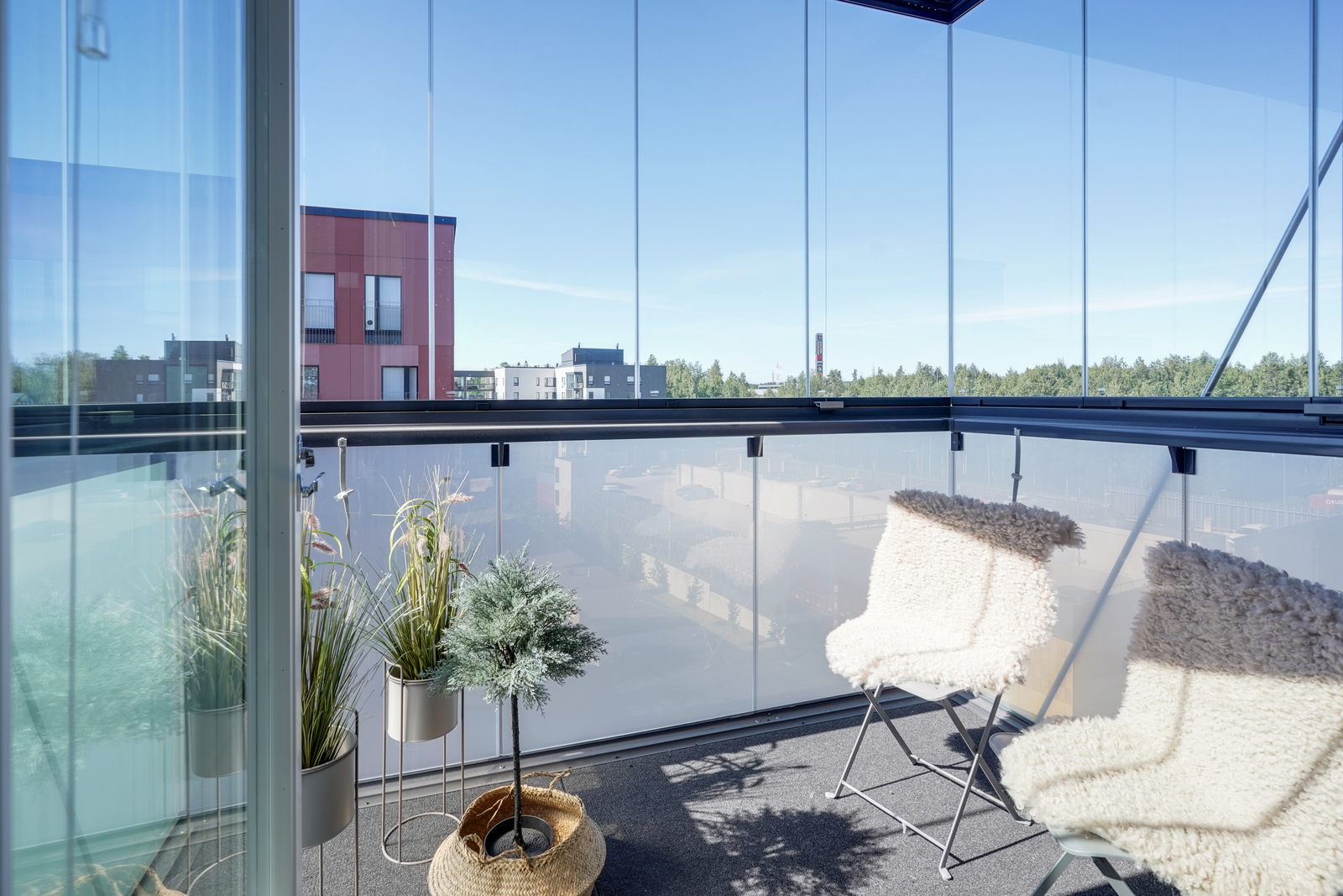 Tehokaspohjainen ja moderni kolmio lasitetulla parvekkeella.