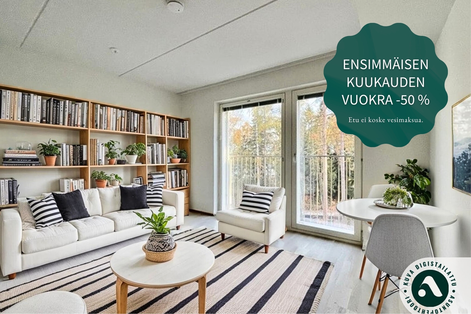 KAMPANJA: Ensimmäisen kuukauden vuokra -50%. Alennus ei koske käyttökorvauksia, kuten vesimaksua.