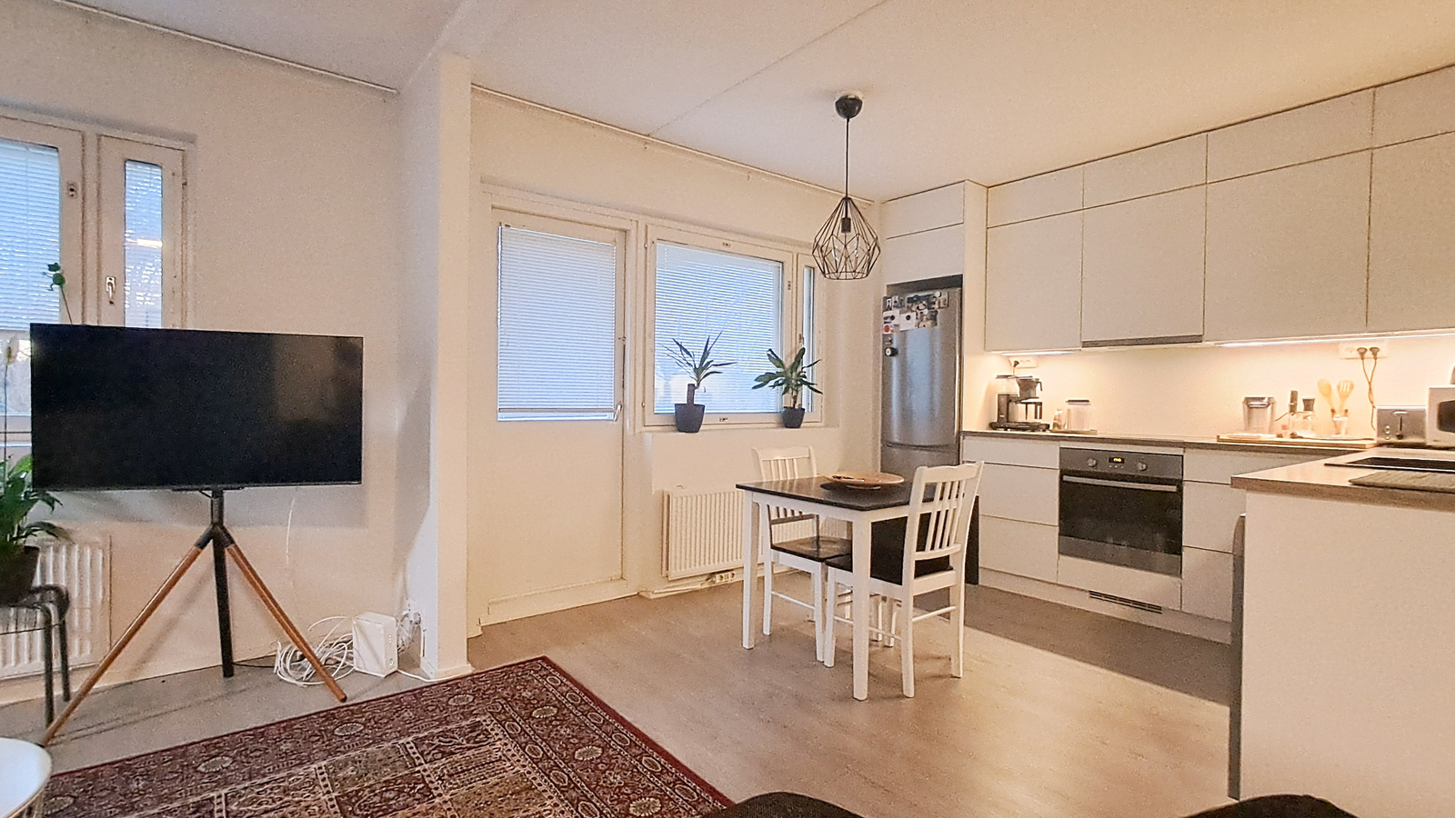 Nyt vuokrattavana erittäin hyväkuntoinen ja avara kaksio, joka tuntuu erinomaisen pohjaratkaisunsa ansiosta neliöitään suuremmalta. Asunnossa on runsaasti säilytystilaa, kylpyhuoneeseen mahtuu täysikokoinen pesukone ja tilavassa keittiössä on reilusti kaappi- ja työskentelytilaa. Parvekkeelta aukeaa vehreä metsämaisema. Nyt on siis tarjolla koti, jossa viihdyt varmasti pitkän aikaa.