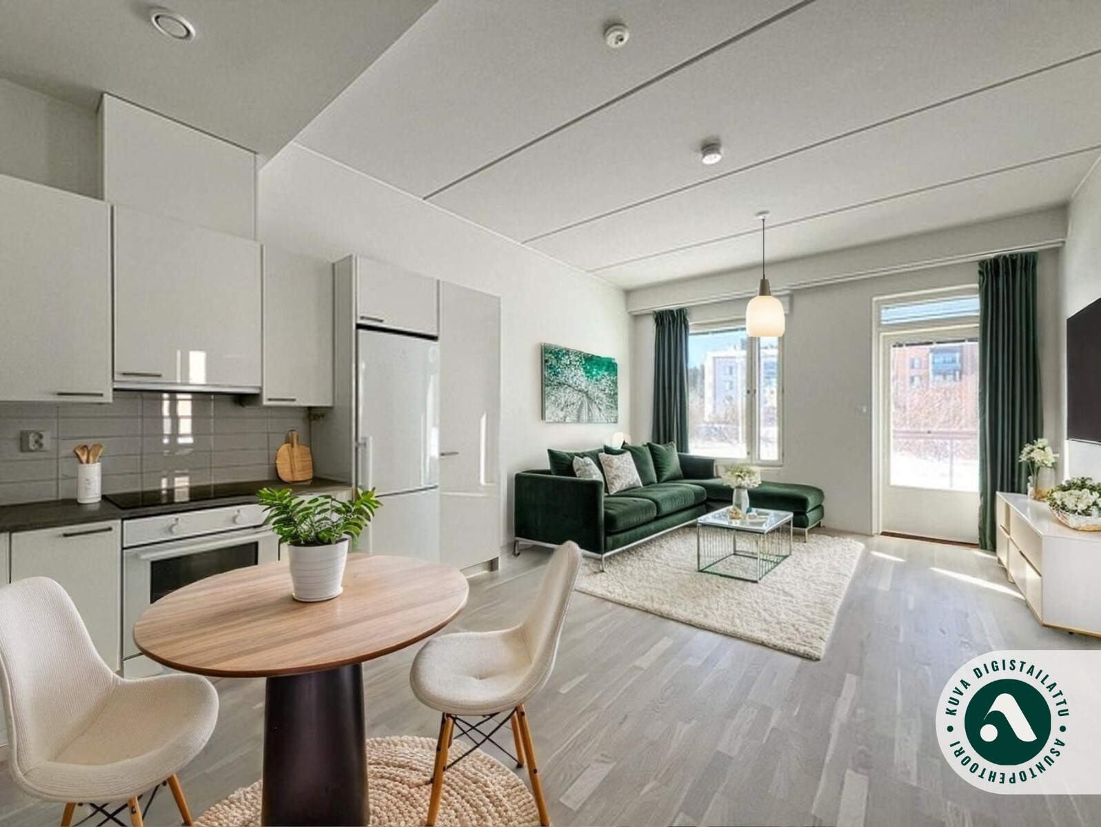 Tässä uudenkarheassa kodissa ihastuttaa huikean korkea huonekorkeus, suuren ikkunat ja kauniit pinnat. Olohuoneesta pääsee lounaan suuntaan olevalle lasitetulla parvekkeelle. Lasitetulta parvekkeelta avarat puistomaiset näkymät. Molemmat makuuhuoneet ovat mukavan kokoisia ja niistä löytyy kaapistot. Arkeen luksusta tuo tilavan kylpyhuoneen yhteydessä oleva oma sauna.