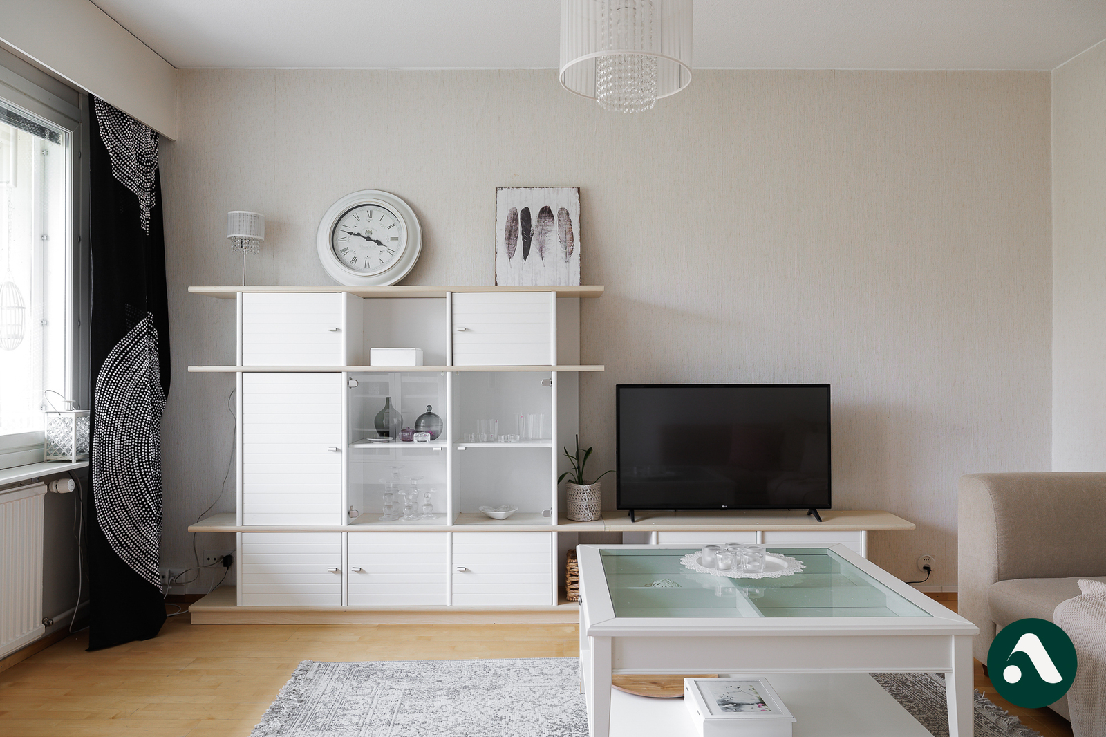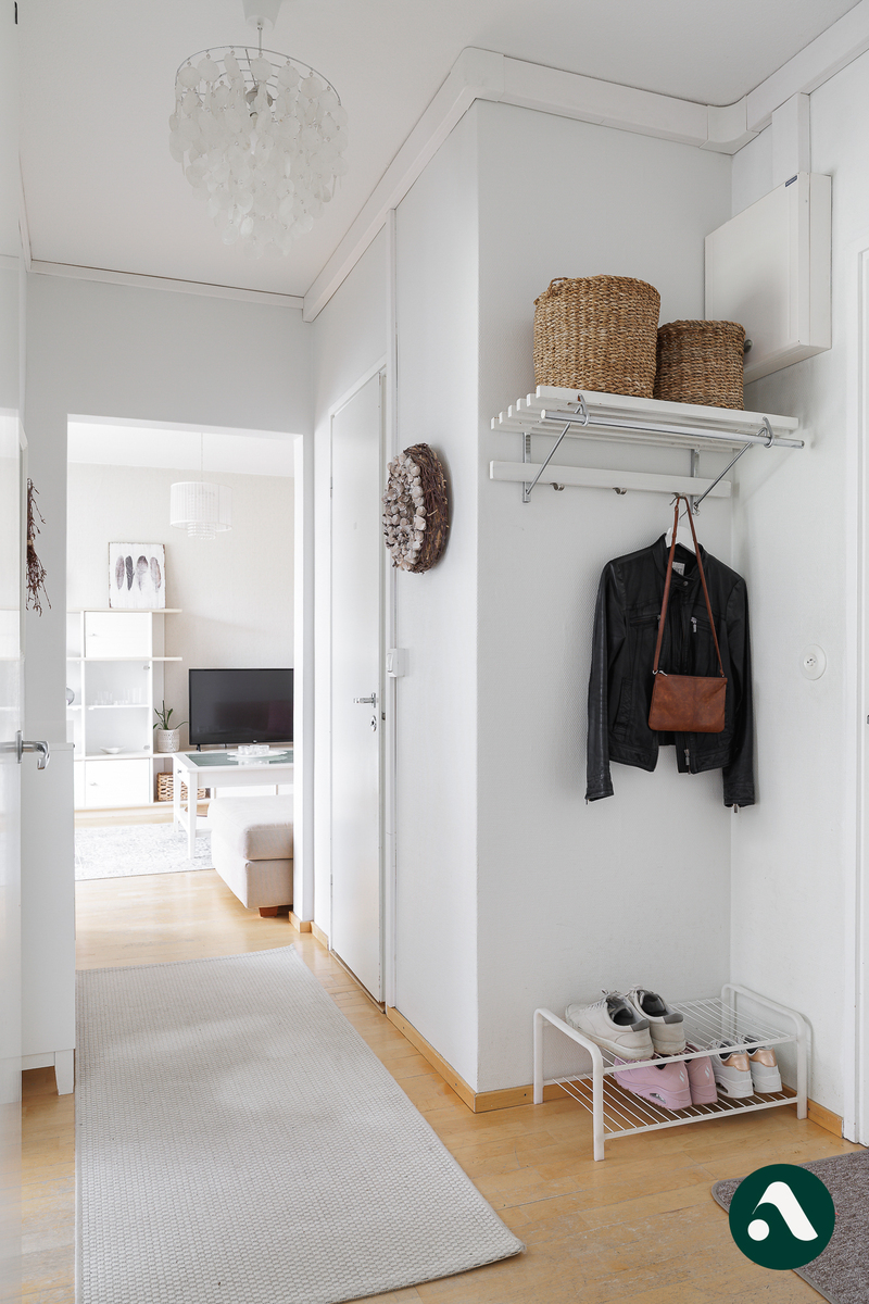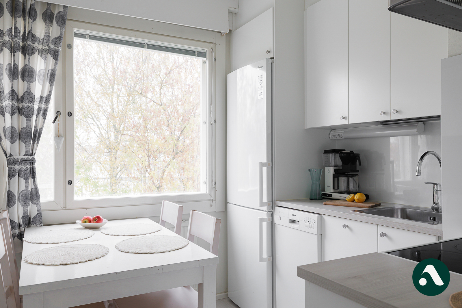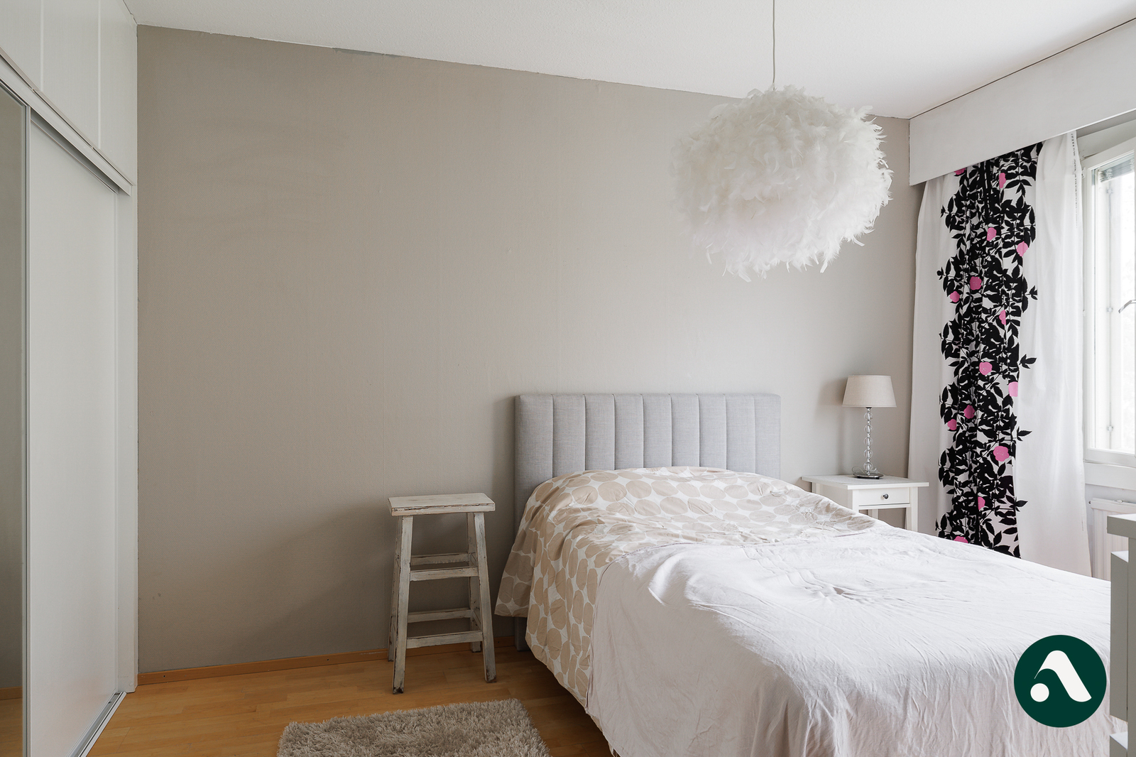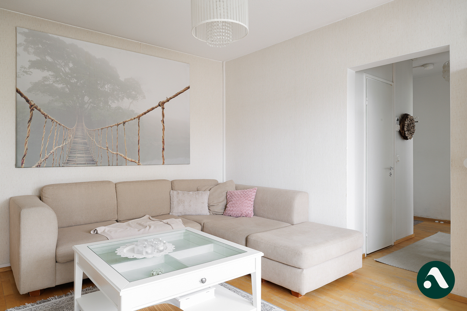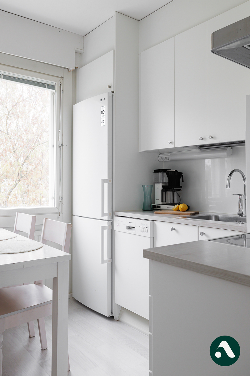 Ylimmän kerroksen kaunis koti tarjoaa toimivan pohjaratkaisun. Tyylikäs ja käytännöllinen keittiö on uusittu kokonaan, ja putkiremontin yhteydessä valmistunut kylpyhuone hurmaa modernilla ilmeellään. Olohuoneesta on käynti lasitetulle länsiparvekkeelle, josta avautuvat rauhalliset näkymät. Makuuhuoneessa on runsaasti säilytystilaa kaapistojen muodossa, ja huoneiston yleisilme on siisti ja viihtyisä.