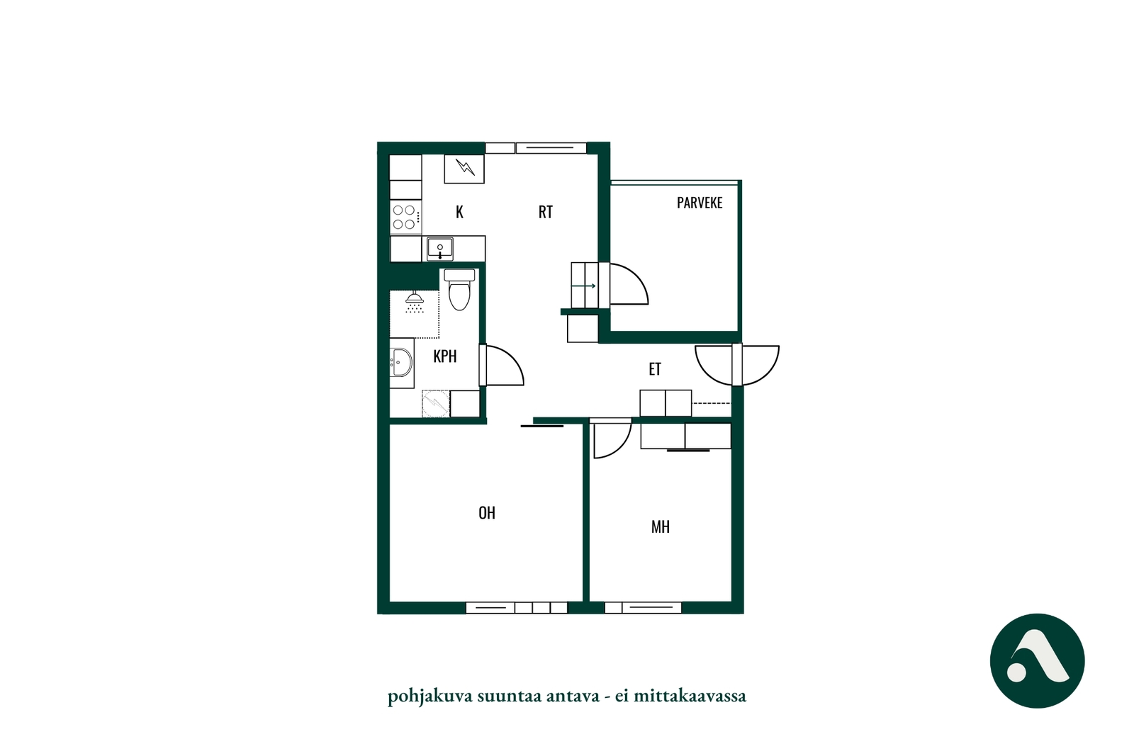 | Huoneiston kokoonpano | 2h+k+kph/wc+las.parv |