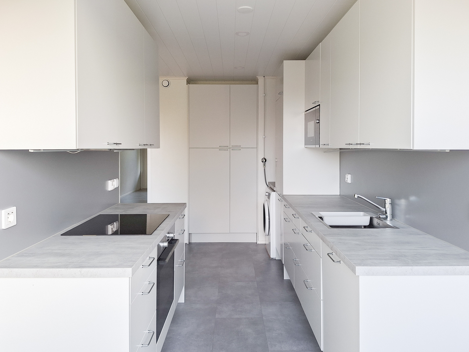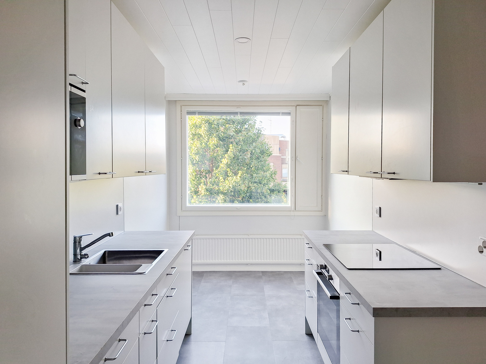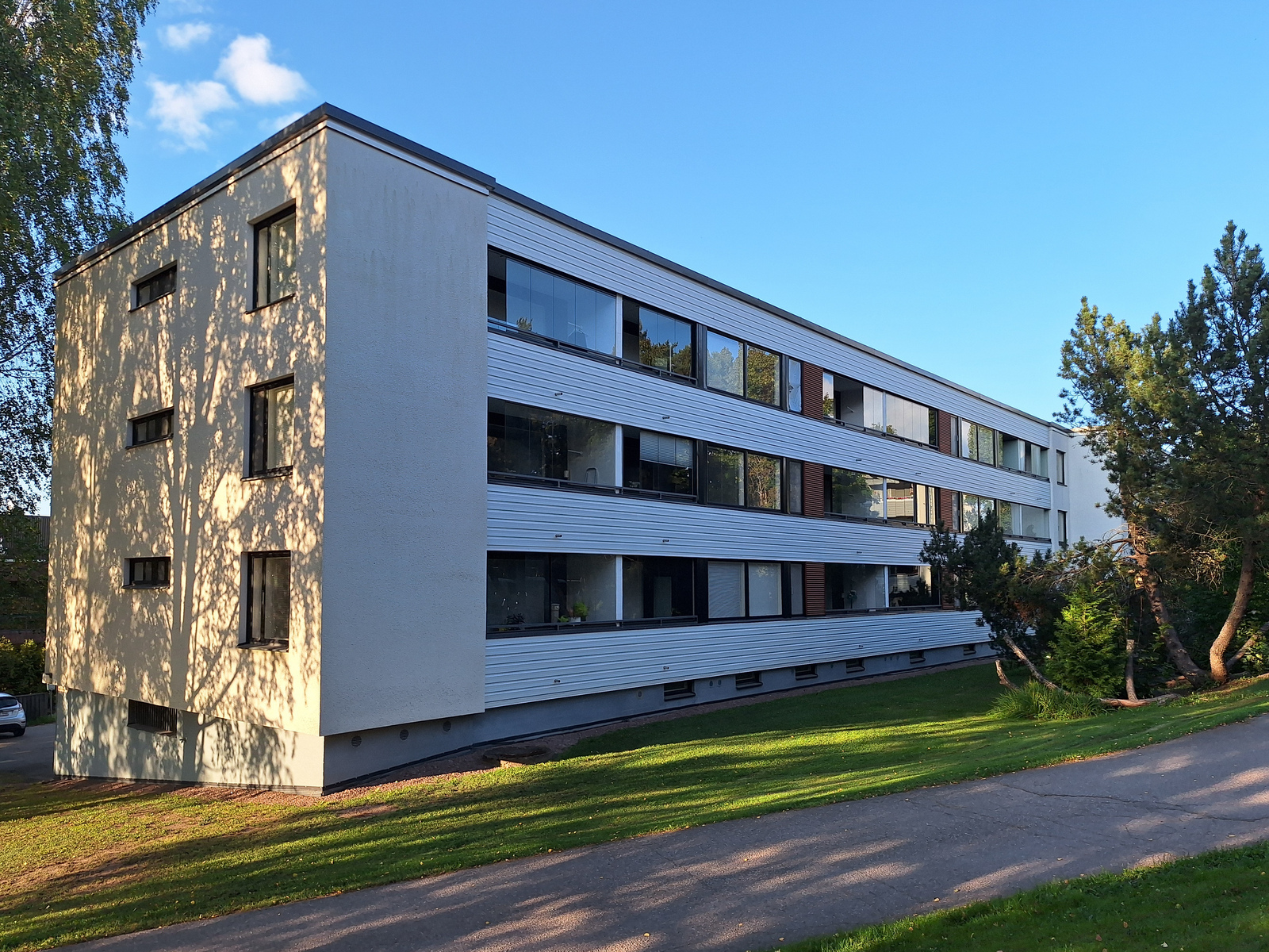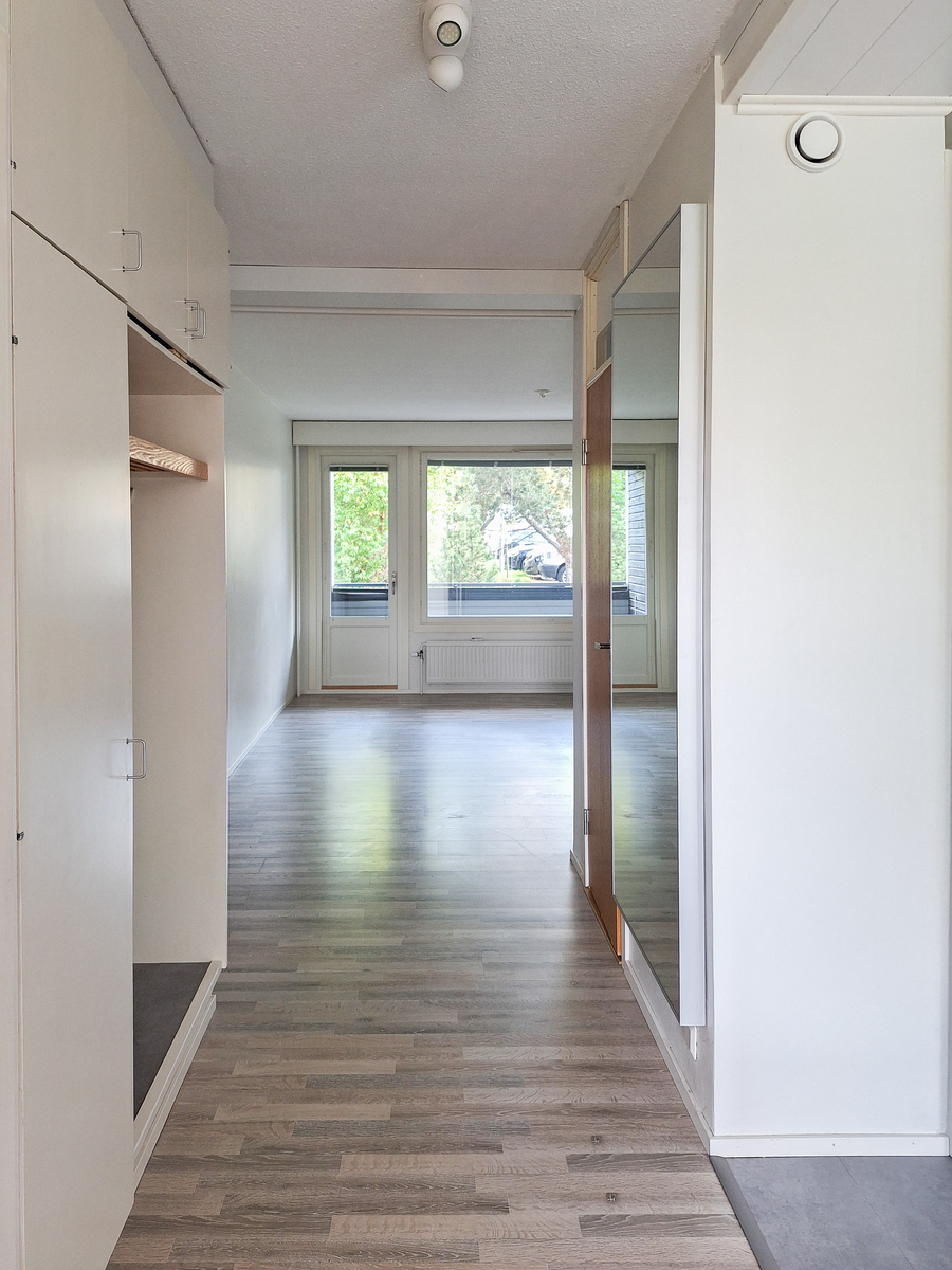 Tämä kauniisti remontoitu kaksio hyvällä pohjaratkaisulla sijaitsee 1. kerroksessa mutta ei maan tasalla. Seinät ovat raikkaan vaaleat ja lattiat tyylikästä vaaleaa laminaattia. Moderni keittiö tyylikkään vaaleanharmailla kaapistoilla kätkee sisäänsä integroidut kodinkoneet astianpesukoneineen ja sinne mahtuu myös ruokapöytä. Olohuoneessa on kesähelteillä ihanan helpotuksen tuova ilmalämpöpumppu. Kylpyhuoneessa on trendikkään tummanharmaat kaakelit ja sieltä löytyy peilikaappi sekä allaskaappi, joten säilytystilaa on. Tilavaan makuuhuoneeseen mahtuu helposti suurempikin parisänky yöpöytineen ja asunnossa on myös tilava vaatehuone. Kokonaisuuden kruunaa hyvänkokoinen, lasitettu parveke vehrein näkymin, joka toimii lisähuoneena keväästä pitkälle syksyyn.