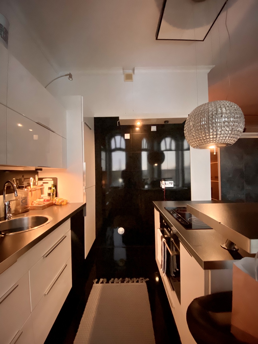 Modernista keittiöstä löytyy mm. tilava jääkaappi/pakastin ja integroitu astianpesukone sekä kylpyhuoneesta pyykinpesukone. Tyylikkäästi laatoitetusta kylpyhuoneesta löytyy asumismukavuutta lisäävä lattialämmitys.