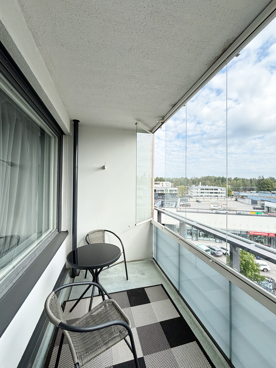 Tämä tehokas ja valoisa yksiö tarjoaa toimivan pohjaratkaisun. Asunnossa on moderni avokeittiö, joka yhdistyy huoneeseen. Kylpyhuoneessa on paikka ja liitäntä pyykinpesukoneelle. Lasitettu parveke tuo lisätilaa ympäri vuoden ja tarjoaa mukavan paikan rentoutua. Yhtiössä on sauna, pyörävarasto, pesutupa ja huoneistokohtaiset varastot.