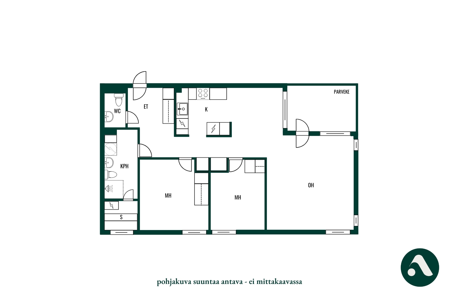 Huoneiston kokoonpano | 3h+k+kph+s+p |