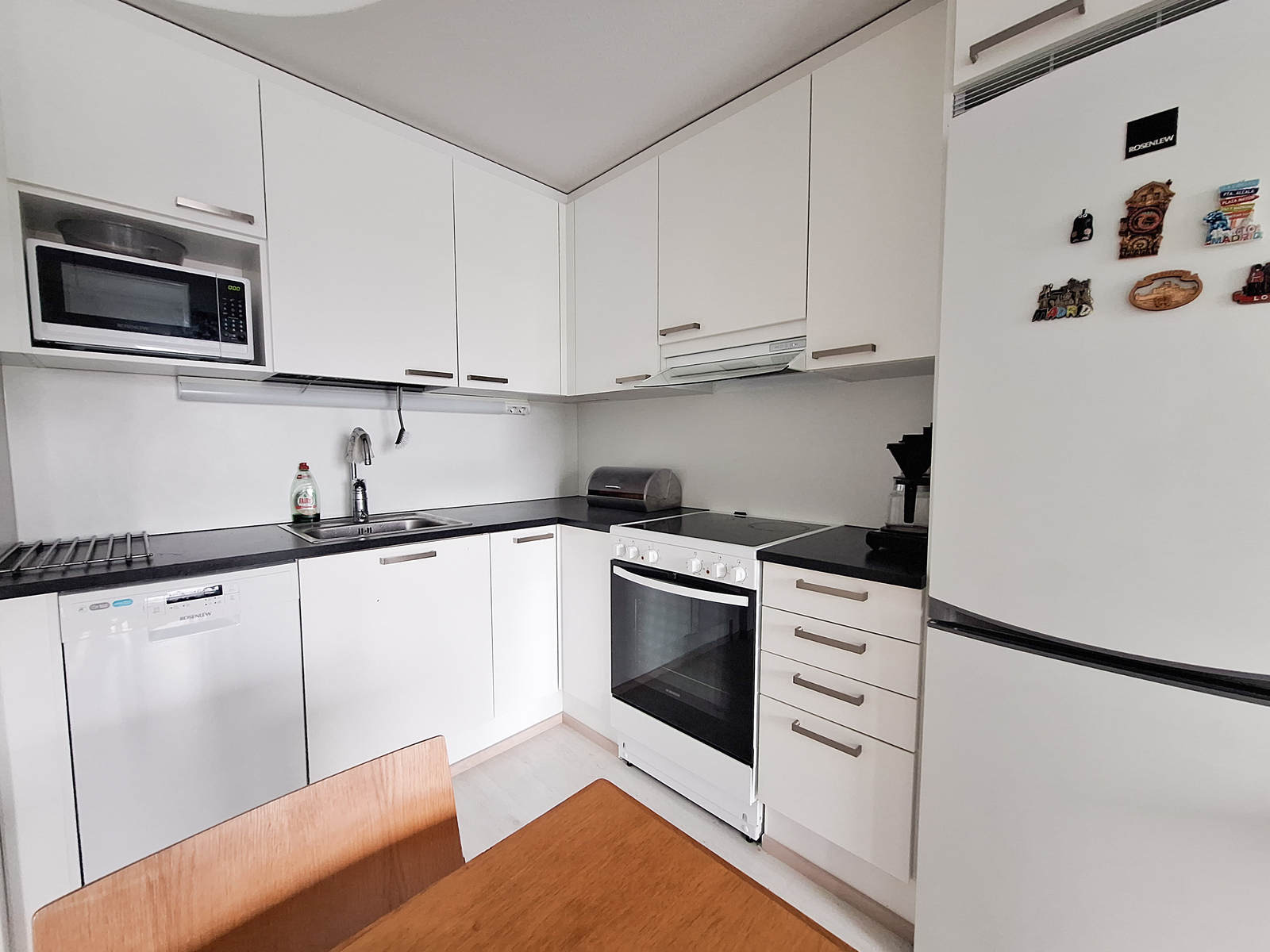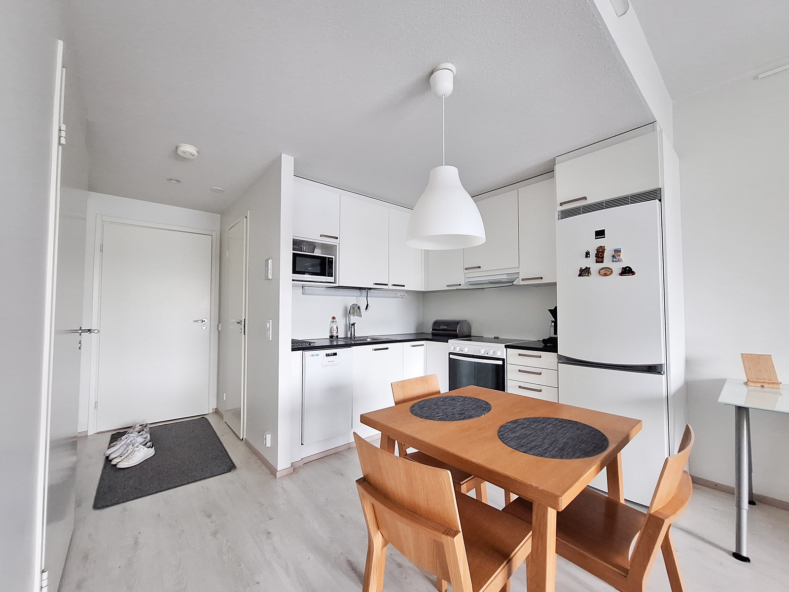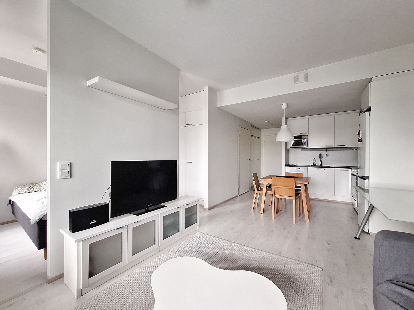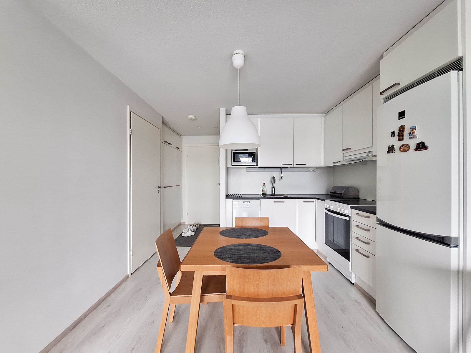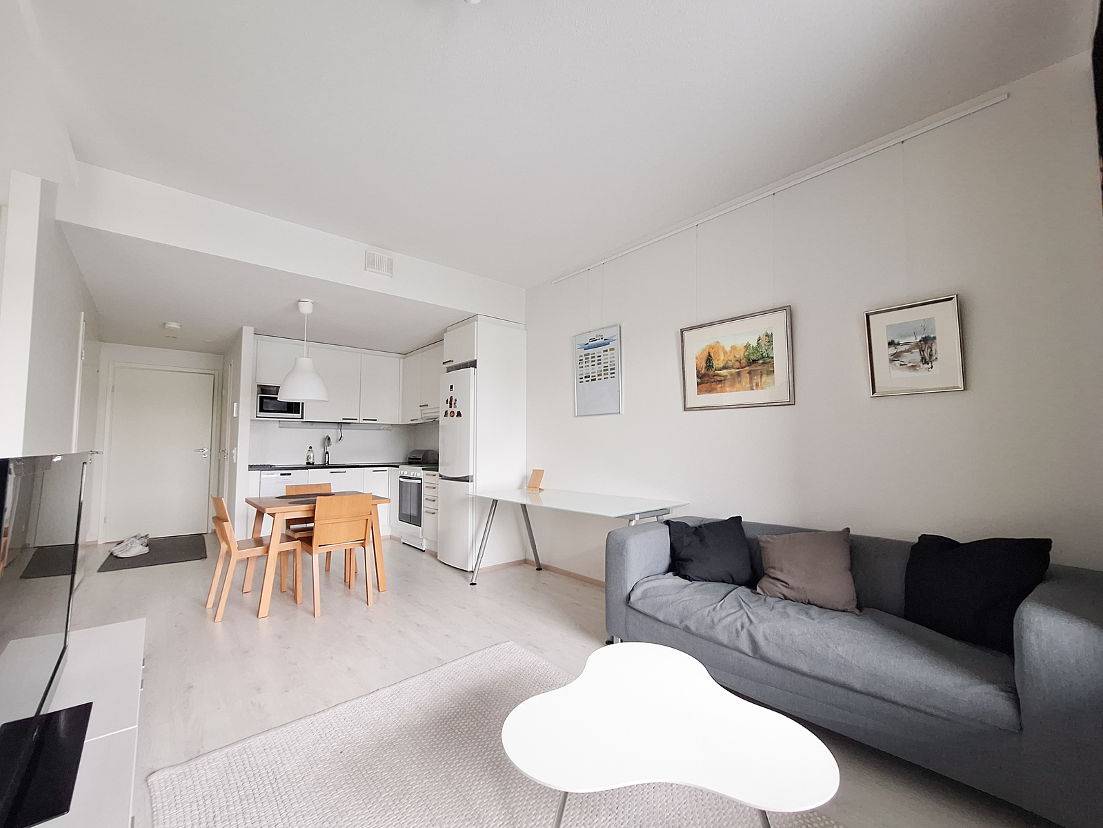 Valoisa kaksio hyvällä pohjaratkaisulla. Asunnossa on tyylikkäät vaaleat pinnat. Lattiamateriaalina laminaatti ja kylpyhuone on laatoitettu. Keittiöstä löytyy astianpesukone ja kylpyhuoneesta pesukoneliitäntä. Asunnossa myös tilava ja lasitettu parveke.