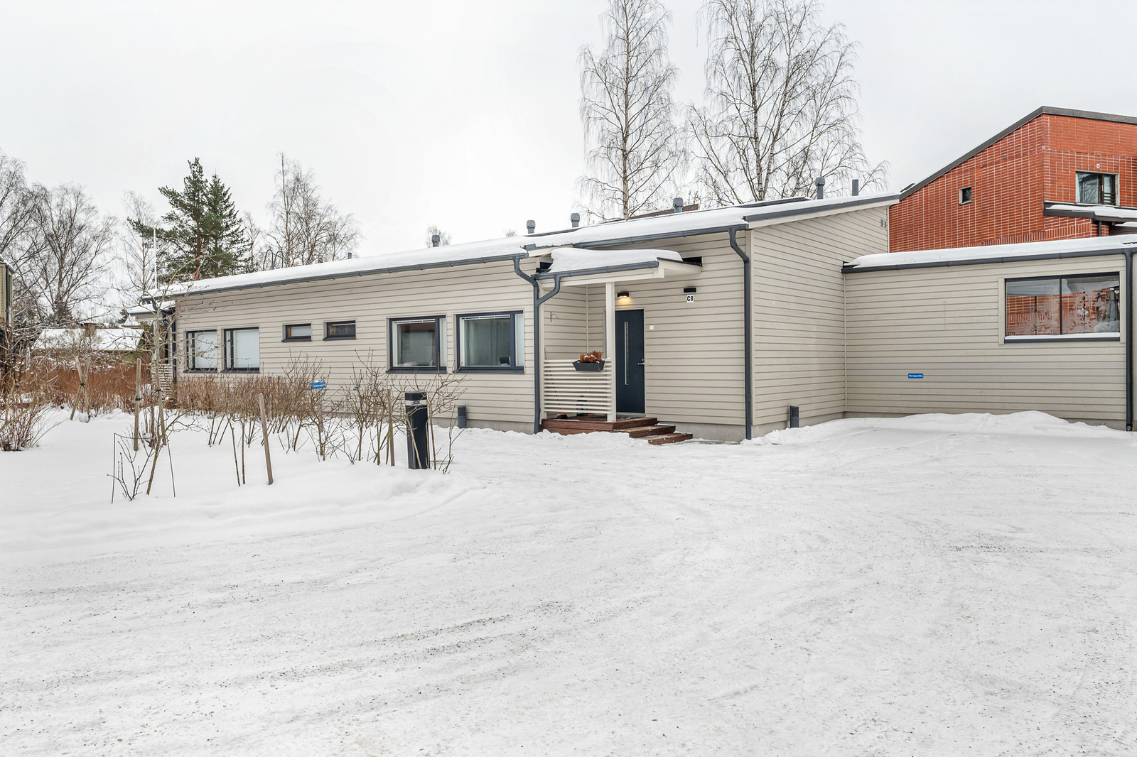 Yksitasoinen paritalon puolikas. Etelänpuoleisella isolla pihalla ja lasitetulla terassilla on runsaasti tilaa vaikkapa grillijuhlien järjestämiselle.
