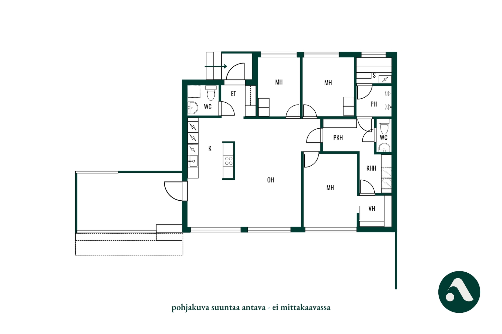 Huoneiston kokoonpano 4h+avok+2kph+wc+khh+las.terassi+piha