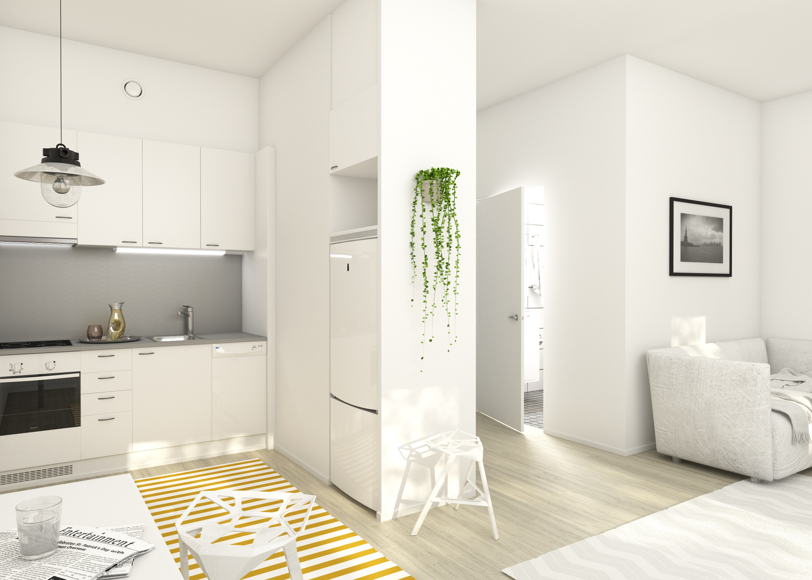 Taloyhtiö on valmistunut vuonna 2017 ja sijaitsee tukevasti omalla tontilla. Asuntoon kulku on vaivatonta hissillä. Huoneistossa on erittäin toimiva ja tehokas pohjaratkaisu: keittiönurkkaus rajaa tilaa luontevasti ja mahdollistaa eteiseen kaappitilaa säilytykseen. Alkoviin mahtuu hyvin isompikin sänky sekä säilytyskaapisto, ja keittiön edessä on selkeä tila sohvalle ja televisiolle.