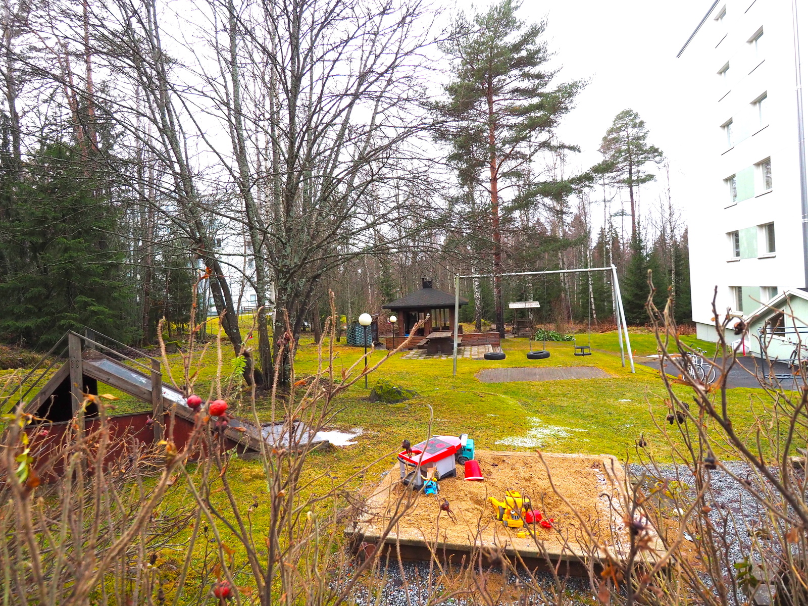 Rauhallinen sijainti metsään rajoittuvalla tontilla. Komeat lenkkeilymaastot lähtevät käytännössä ulko-ovelta ja toisaalta lähikauppa, bussipysäkit ja muut palvelut myös vieressä.