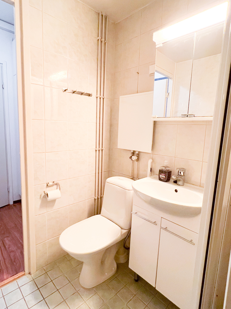 Tässä siistissä asunnossa on toimiva pohjaratkaisu ja huoneet ovat reilun kokoisett. Kylpyhuone on laatoitettu ja sisältää pesukoneliitännän. Astianpesukoneella varustettuun keittiöön saat hyvin mahtumaan ruokapöydän. Iso avara olohuone ja makuuhuone. Olohuoneesta on käynti lasitetulle parvekkeelle. Säilytystilaa löytyy mukavasti makuuhuoneen yhteydessä olevasta isosta vaatehuoneesta ja vaatekaapista sekä eteisen vaatekaapeista. Kellarissa erillinen oma lämmin häkkivarasto ja kylmäkellari.