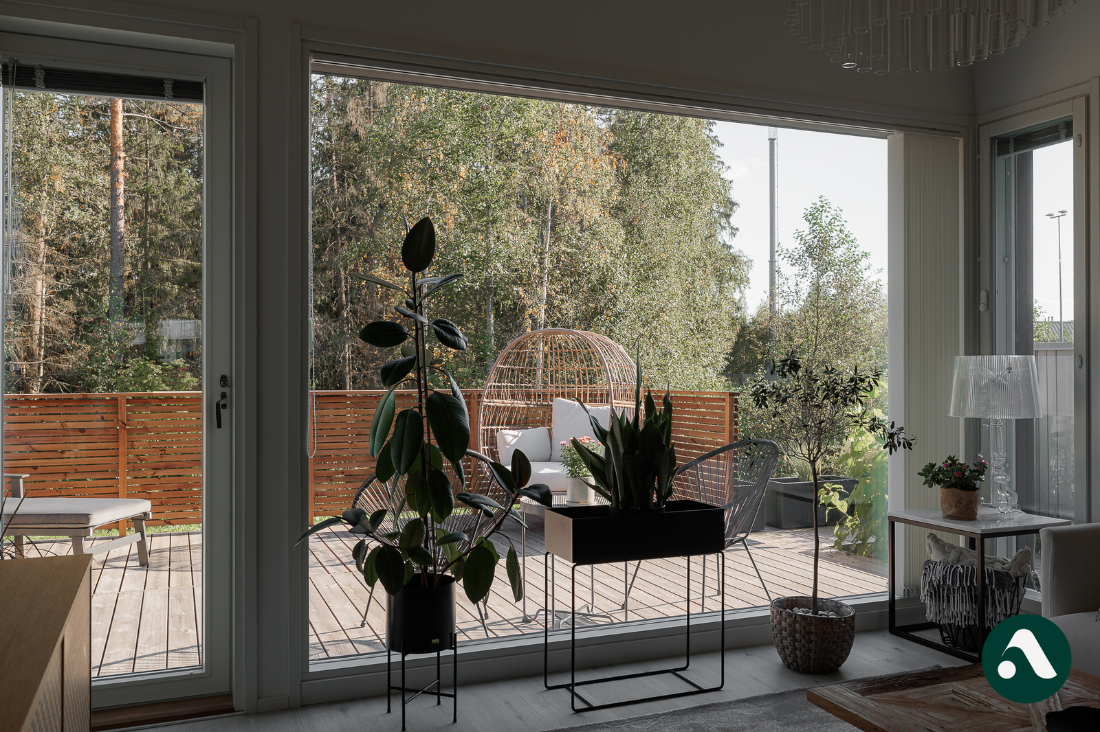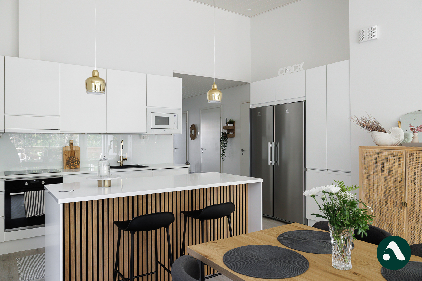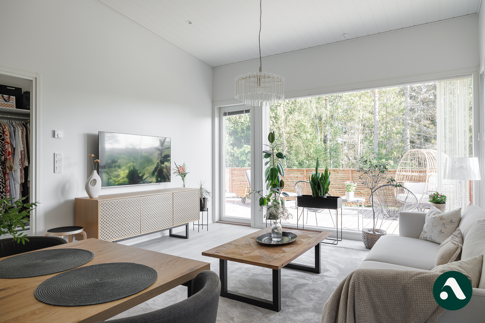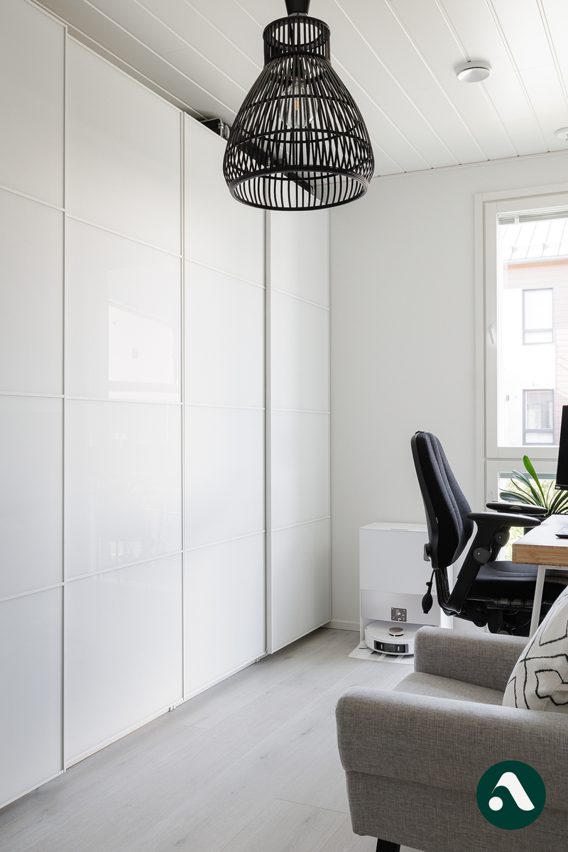 Tässä vuonna 2021 valmistuneessa kodissa on jo rakennusvaiheessa tehty runsaasti tasokorotuksia, jotka tekevät arjesta erityisen viihtyisää. Takapihan terassia on laajennettu, lattiat on viimeistelty tyylikkäällä ja kestävällä vinyylikorkilla, ja kodin varusteluun kuuluu muun muassa ilmalämpöpumppu, aamiaiskaappi sekä vesipiste kodinhoitohuoneessa. Lisäksi löytyy laatoitettu erillis-wc ja monia muita laadukkaita yksityiskohtia. Erinomainen pohjaratkaisu, poikkeuksellisen korkea huonekorkeus ja suuret ikkunat tuovat asuntoon runsaasti valoa ja avaruutta – ikkunoista avautuvat myös upeat metsämaisemat. Talo on erinomaisesti pidetty ja käytännössä uutta vastaavassa kunnossa.