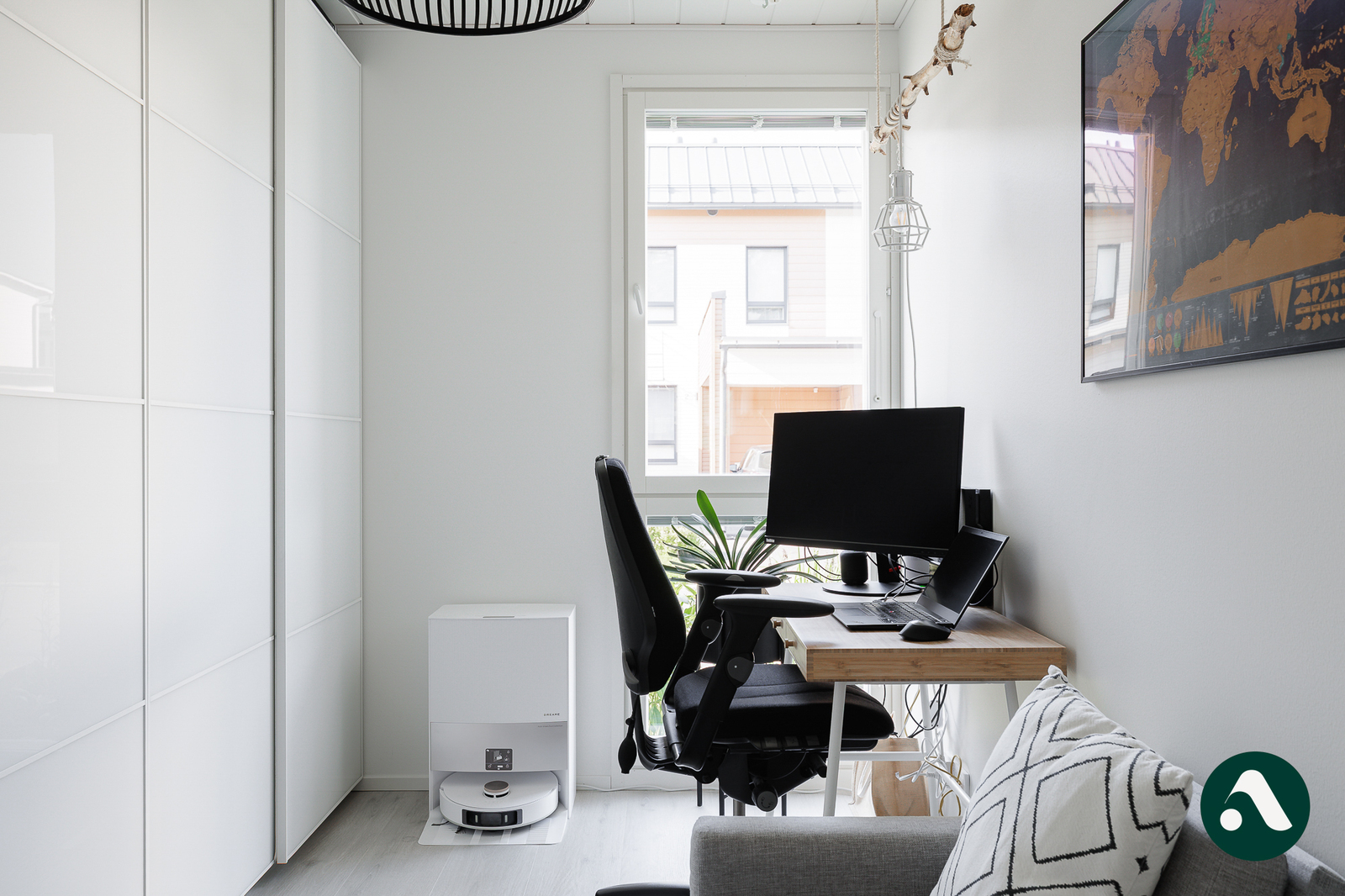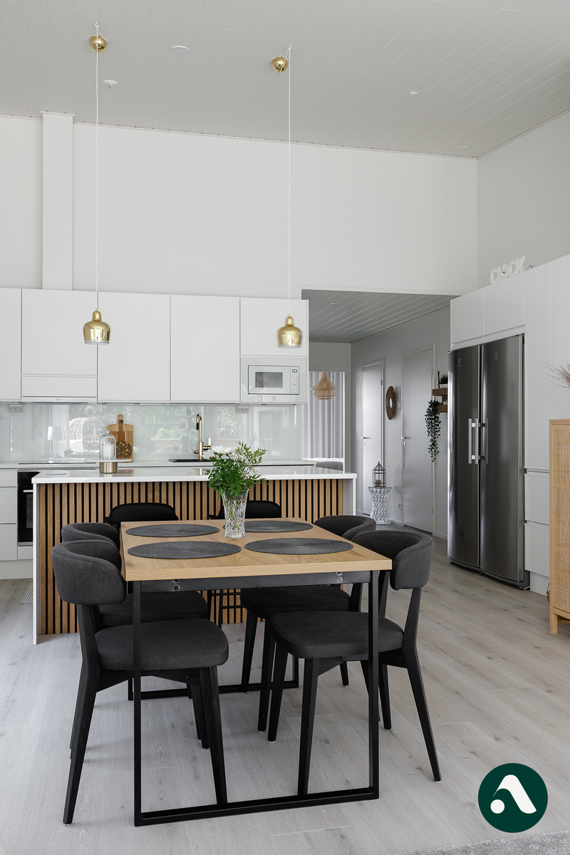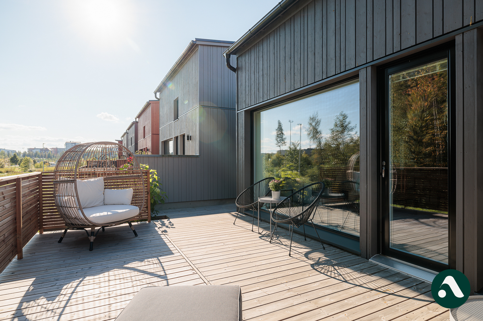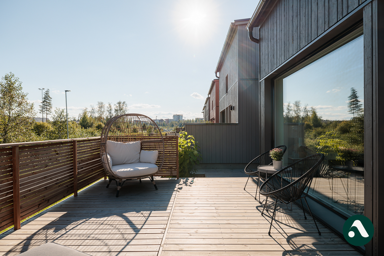 Tässä vuonna 2021 valmistuneessa kodissa on jo rakennusvaiheessa tehty runsaasti tasokorotuksia, jotka tekevät arjesta erityisen viihtyisää. Takapihan terassia on laajennettu, lattiat on viimeistelty tyylikkäällä ja kestävällä vinyylikorkilla, ja kodin varusteluun kuuluu muun muassa ilmalämpöpumppu, aamiaiskaappi sekä vesipiste kodinhoitohuoneessa. Lisäksi löytyy laatoitettu erillis-wc ja monia muita laadukkaita yksityiskohtia. Erinomainen pohjaratkaisu, poikkeuksellisen korkea huonekorkeus ja suuret ikkunat tuovat asuntoon runsaasti valoa ja avaruutta – ikkunoista avautuvat myös upeat metsämaisemat. Talo on erinomaisesti pidetty ja käytännössä uutta vastaavassa kunnossa.
