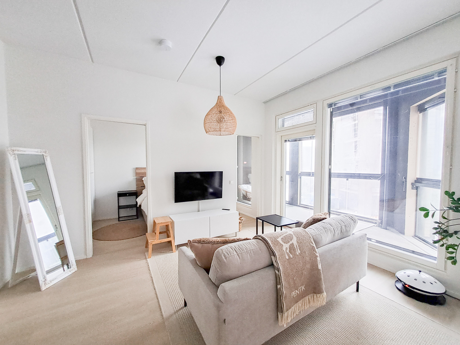 Tilavasta olohuoneesta löytyy paikka suuremmillekin sohvakalusteille ja olohuoneesta on käynti koko asunnon levyiselle parvekkeelle. Parveke tarjoaa mukavasti omaa rauhaa ja toimii täydellisenä paikkana aamukahvihetkille tai rentoutumiseen.