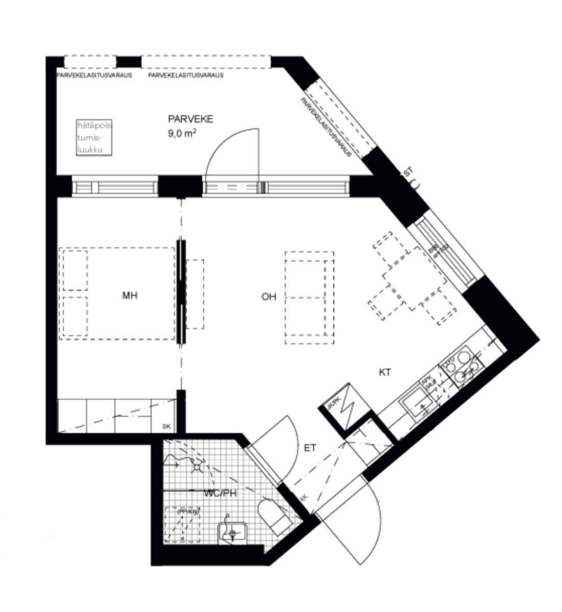 Huoneiston kokoonpano 2h+avok+kph+lp