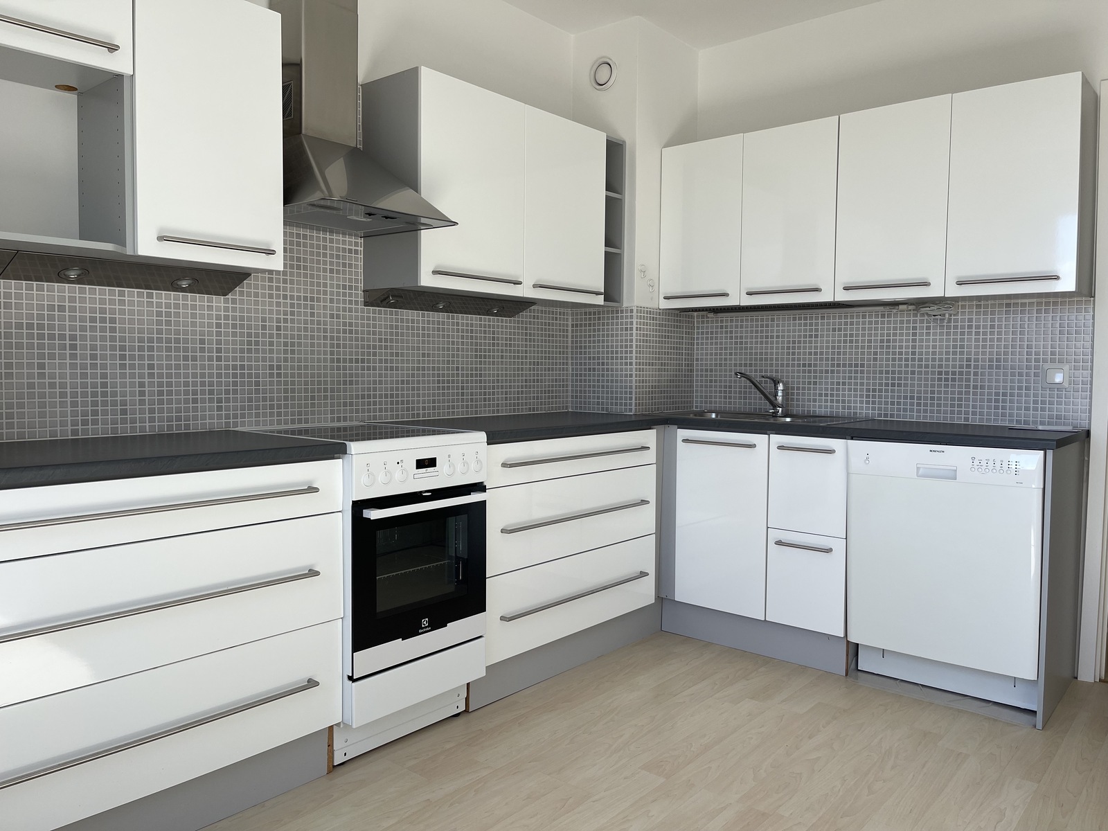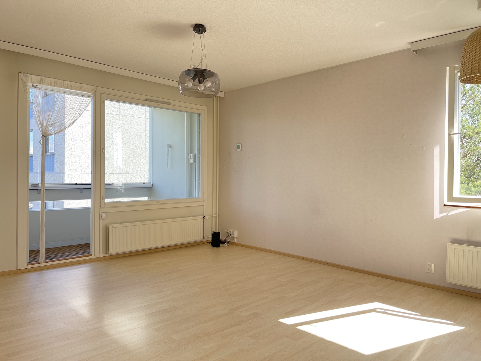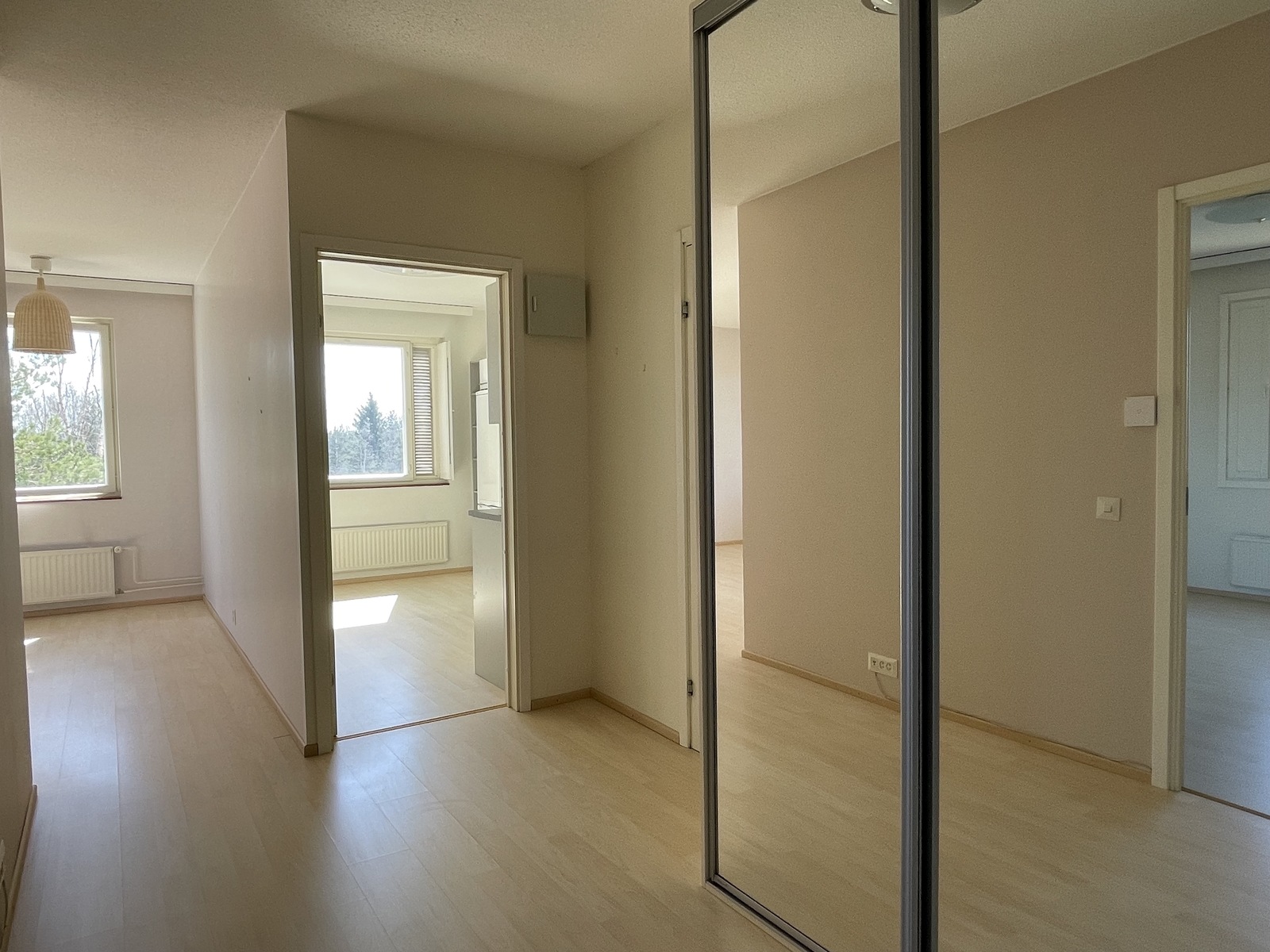Keittiössä on hyvin työ- ja säilytystilaa sekä paikka ruokaryhmälle. Säilytystilaa löytyy myös eteisen kaapistosta sekä isosta vaatehuoneesta. Olo- ja molemmat makuuhuoneet ovat tilavia ja olohuoneesta on käynti lasitetulle parvekkeelle. Kylpyhuoneessa on kuivaava pesukone jo valmiina!
