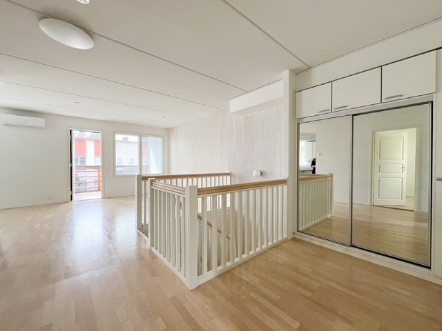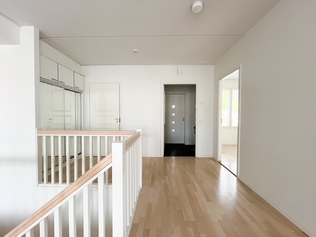 Nyt vapaana uniikki kahden kerroksen koti aivan Kallaveden ääreltä! Tässä kodissa on neljä makuuhuonetta, joista kolme sijaitsee alakerrassa kylpyhuone-kodinhoitotilan, saunan sekä erillisen wc:n kanssa. Yhdestä makuuhuoneesta on käynti terassille ja omalle pienelle pihalle. Sisäänkäynti tähän kotiin tapahtuu kakkoskerroksesta, josta löytyy yhden makuuhuoneen lisäksi tilava eteinen, wc sekä olohuone ja keittiö ruokatilalla, unohtamatta olohuoneen yhteydessä olevaa lasitettua parveketta. Laadukkaat ja vaaleat pinnat sekä isot ikkunat tuovat kotiin valoa. Skandinaavinen ja moderni ilme jatkuu läpi asunnon. Mukavuutta kesäaikaan tuo yläkerran viilentävä ilmalämpöpumppu.