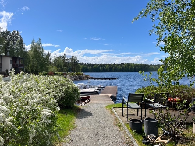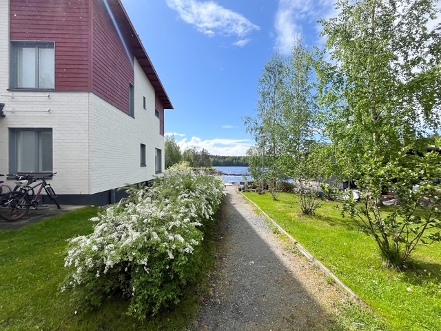 Tämän kodin sijainti on loistava! Taloyhtiö sijaitsee omarantaiselle tontilla, josta voit pulahtaa uimaan tai suunnata vesille yhteiskäyttöisellä soutuveneellä. Oman auton saat parkkiin asunnon yhteydessä vuokrattavalle autokatospaikalle ja julkiset yhteydet ovat loistavat läheiseltä kadulta. Saaristokaupunki asuinalueena on todella rauhallinen sekä perheystävällinen ja kaikki palvelut lähikaupasta alakouluun ja päiväkoteihin löytyvät läheltä. Kallioinen luonto ja joka puolella kimmeltävä Kallavesi saavat viihtymään täällä pitkään.
