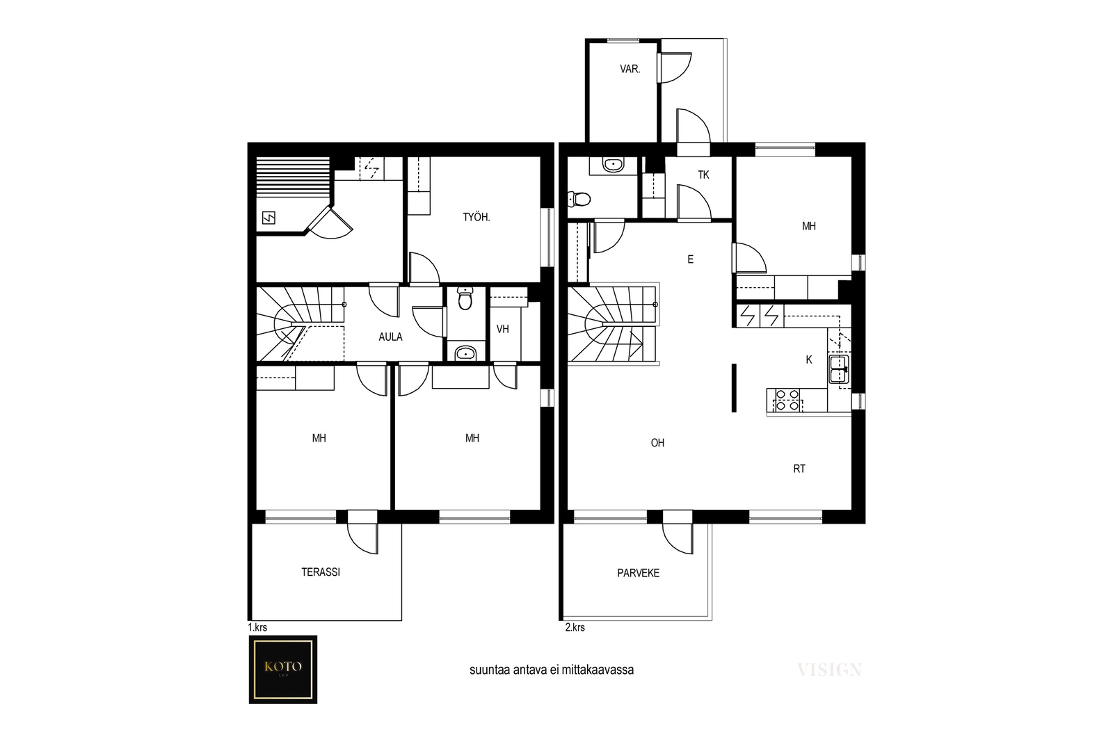 Huoneiston kokoonpano | 5h + k + kph/khh + s + 2 x wc + las.p + terassi |