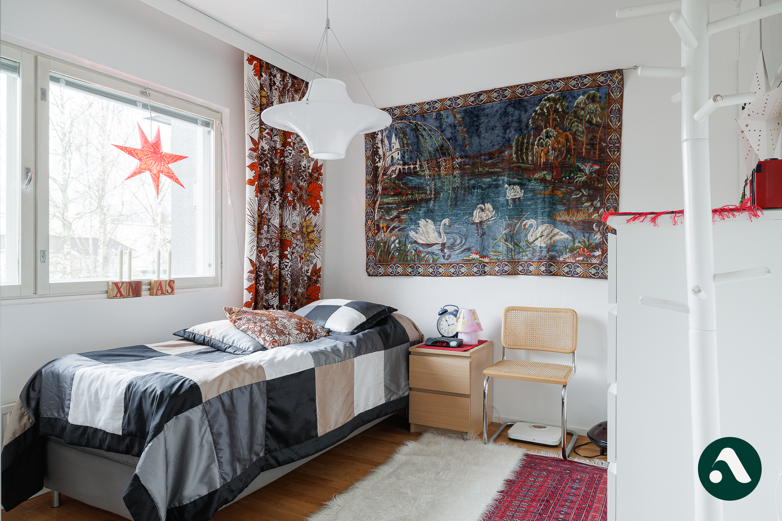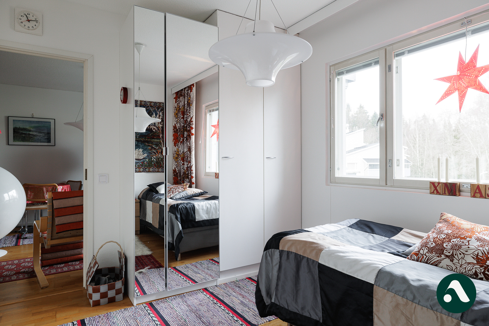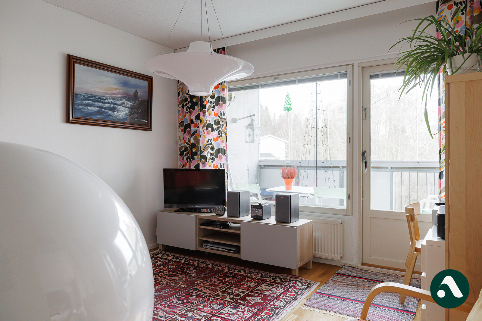 Asunnossa on erinomainen pohjaratkaisu. Tupakeittiö ja hyvän kokoinen makuuhuone luovat kokonaisuuden, jossa elämä soljuu mukavasti. Makuuhuoneessa olevat kaapistot tuovat mukanaan reippaasti säilytystilaa.