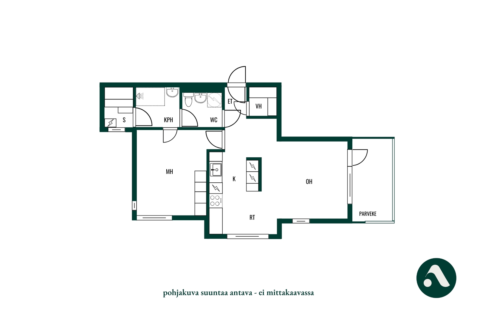 Huoneiston kokoonpano 2h, k, kph, s, vh, lasit. parv.