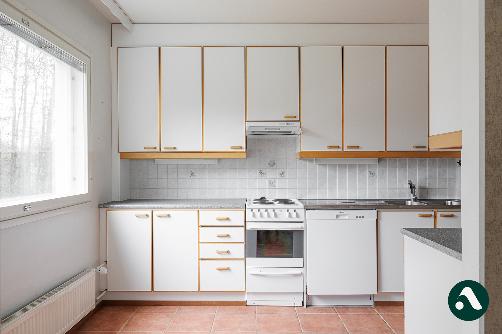 Keittiön kuvaus liesituuletin astianpesukone