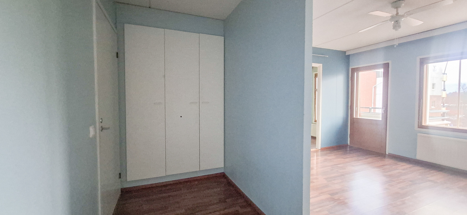 Tervetuloa tutustumaan tähän valoisaan ja hyvin suunniteltuun kaksioon, jossa arjen toimivuus ja kodikkuus kohtaavat. Asunnon avara olohuone ja tyylikäs vaalea avokeittiö luovat yhtenäisen, viihtyisän kokonaisuuden, jossa on reilusti kaappi- ja laskutilaa. Makuuhuoneeseen mahtuu luontevasti myös työpiste, ja lasitettu parveke tarjoaa lisätilaa keväästä pitkälle syksyyn. Suuret ikkunat tuovat asuntoon runsaasti luonnonvaloa, ja säilytystilaa on mukavasti koko kodissa, mikä tekee arjesta sujuvaa.
