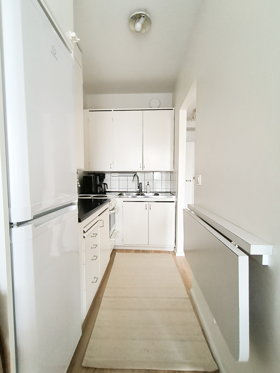 Tämän kauniin kodin pohjaratkaisu on toimiva ja helposti kalustettavissa. Sängylle on oma paikka alkovissa ja huonetilaan mahtuu hyvin sohva ja ruokapöydälle on oma paikka keittiön yhteydessä. Keittiössä on 60-luvun tunnelmaa alkuperäisissä, mutta erittäin hyvin säilyneissä kaapeissa. Lasku- ja kaappitilaa on hyvin ja tiskaus hoituu helposti kahden altaan ja kuivauskaapin ansiosta. Eteisen yhteydessä on pitkä rivi kaappeja säilytykseen ja huoneistolle kuuluu suuri kellarikomero. Tyylikäs kylpyhuone on remontoitu yhtiön putkiremontin yhteydessä ja sinne mahtuu päältä täytettävä pyykinpesukone. Suuri parveke kruunaa tämän kokonaisuuden!