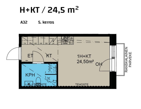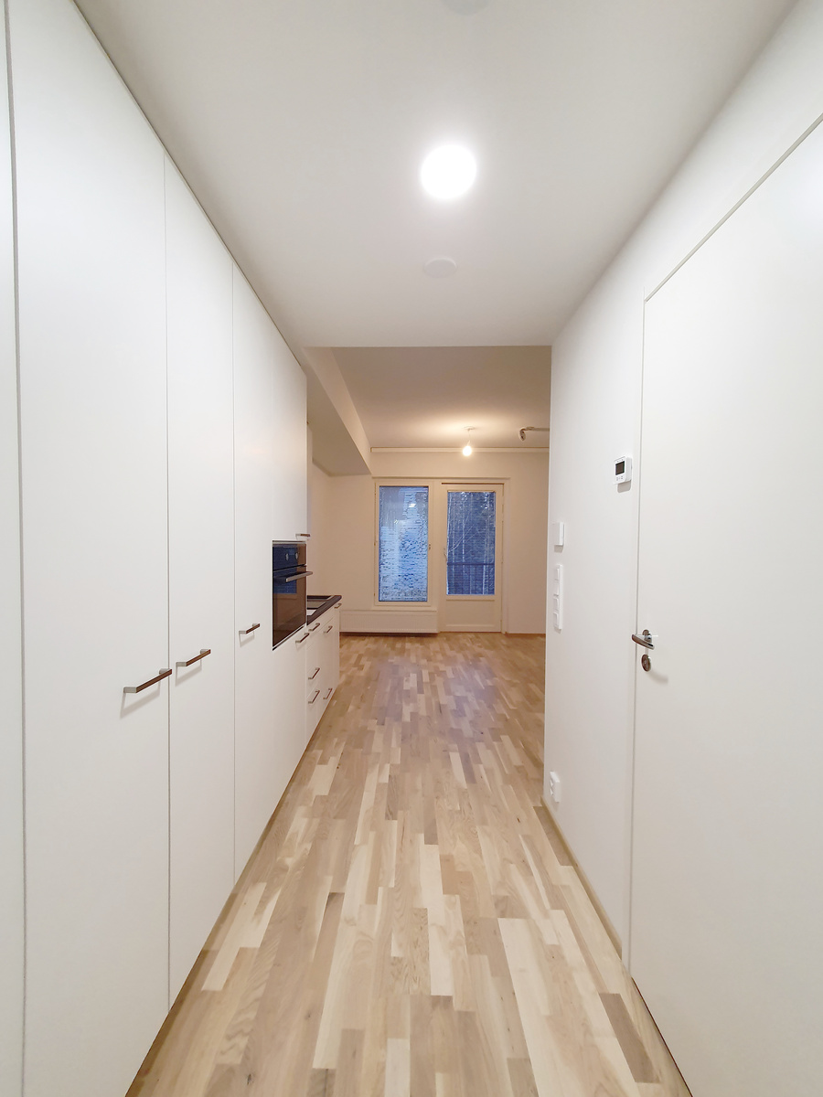 Asunnossa on laadukkaat parkettilattiat ja arjen mukavuutta lisää huoneistokohtainen lämmöntalteenotolla varustettu ilmanvaihtokone. Avokeittiöstä löytyy jääkaappi, keraaminen liesitaso ja astianpesukone. Laatoitetussa kylpyhuoneessa on liitäntä pyykinpesukoneelle ja sähköinen mukavuuslattialämmitys. Kesäisin ilahduttaa ranskalainen parveke.