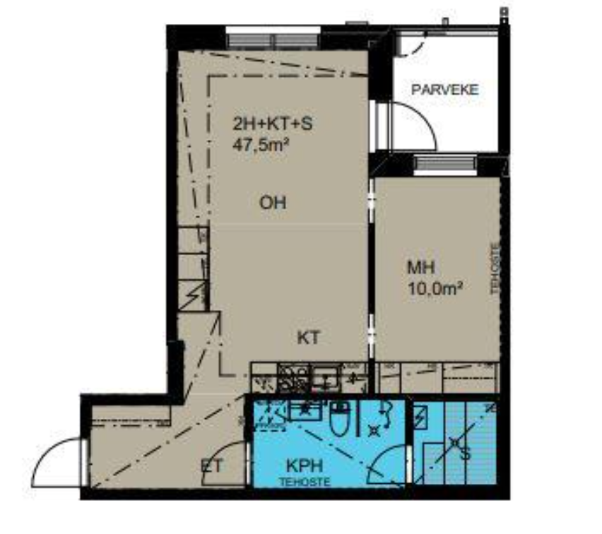 Huoneiston kokoonpano 2h+kt+s+las.p.